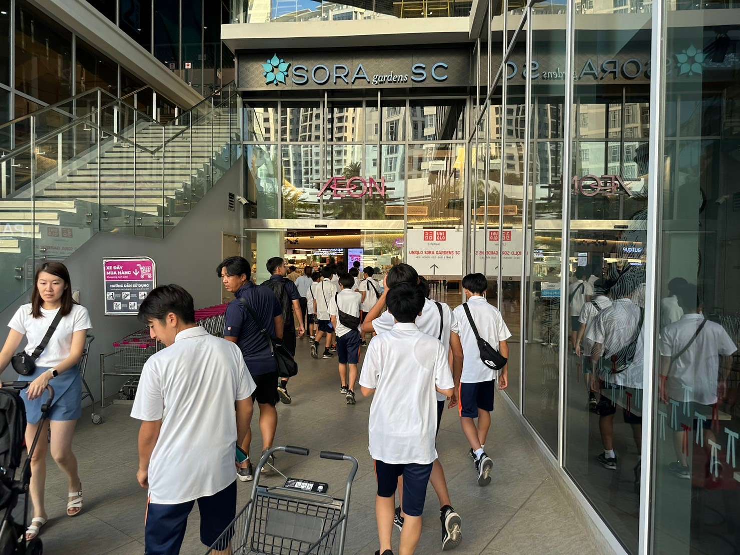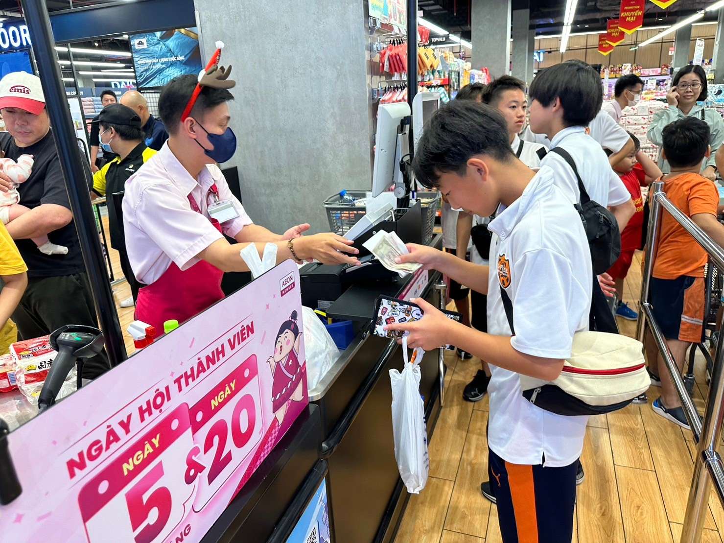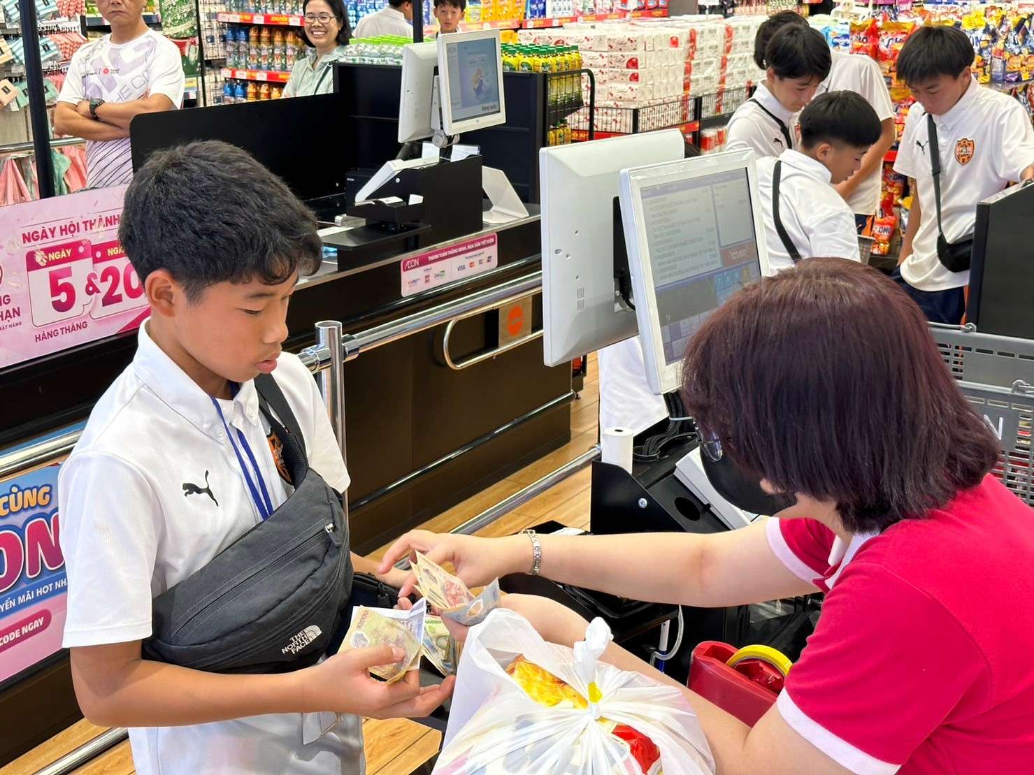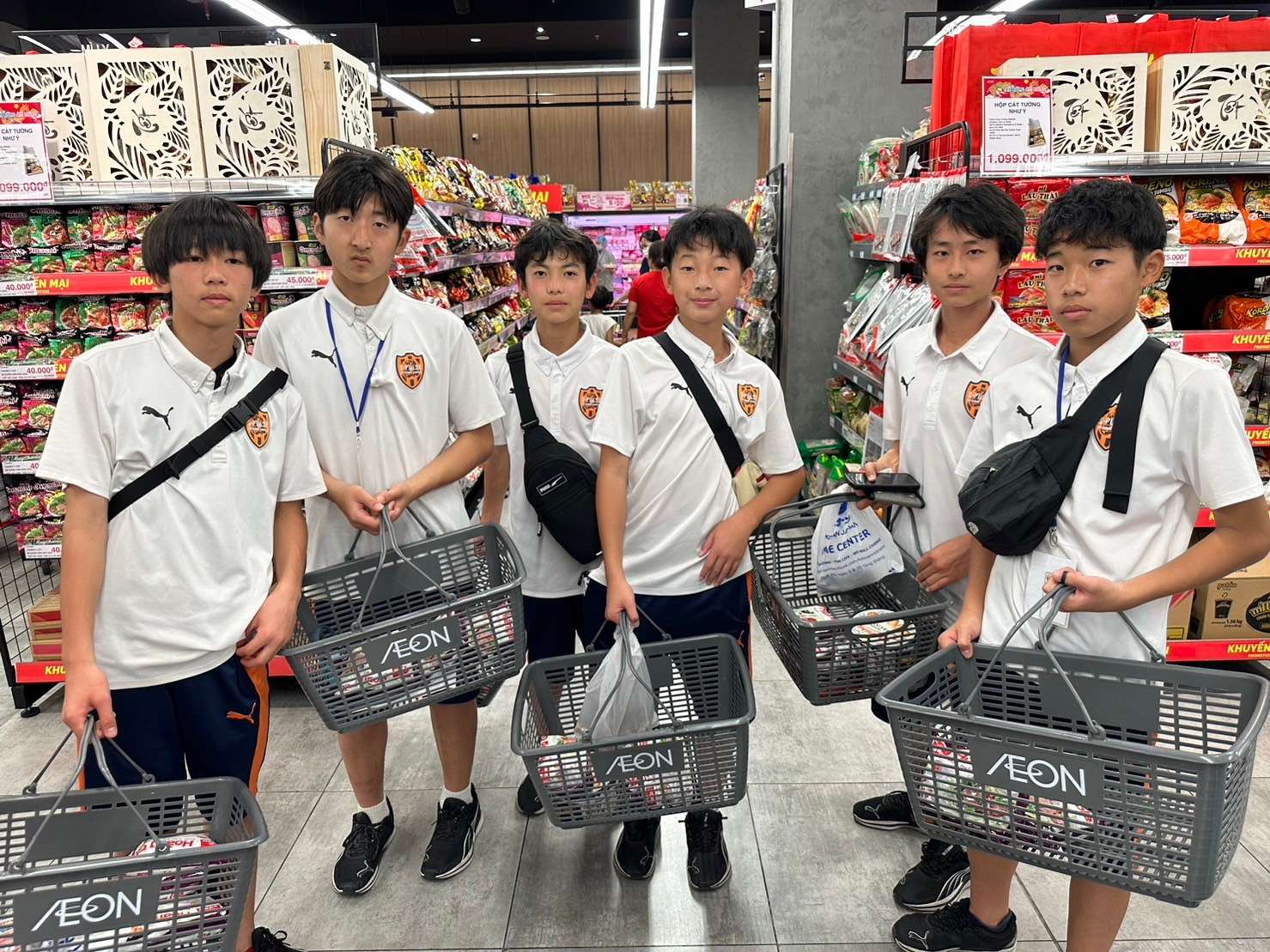 ホテルフロントで各自両替を行い、現地通貨のベトナムドンを持って近くのイオンタウンまで歩いていきました。短い時間でしたが、それぞれお土産を選びレジにて精算。全ての自分の行動が海外での体験学習として選手の成長の糧になってほしいです。