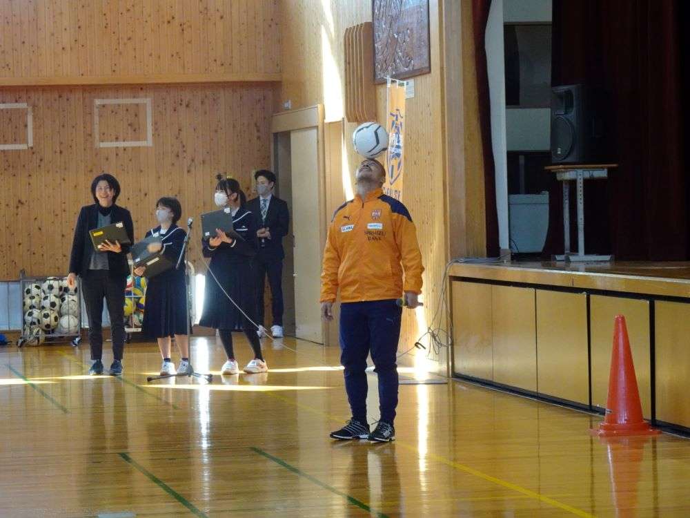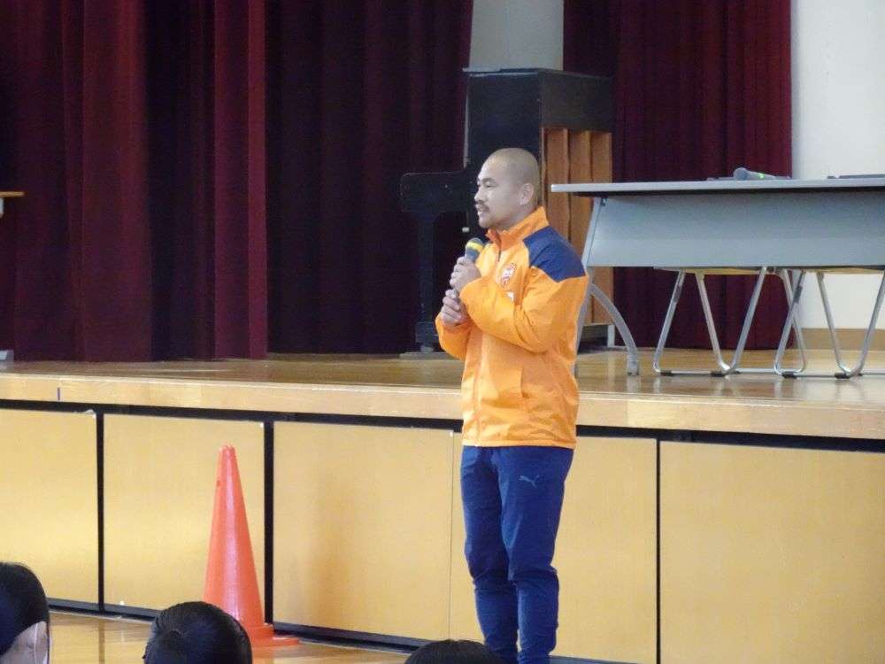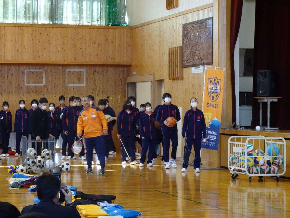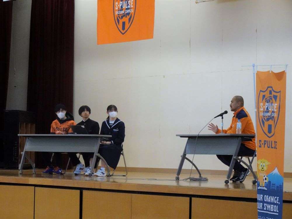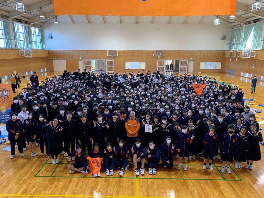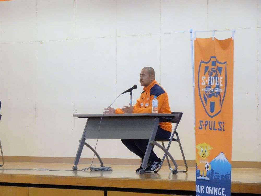 12/21(木)、清水エスパルスの吉田豊選手が、エスパルスのファミリータウン富士宮市にある母校 富士宮市立富士根南中学校を訪問し、「卒業生一日先生」の授業で全校生徒619名と交流しました。