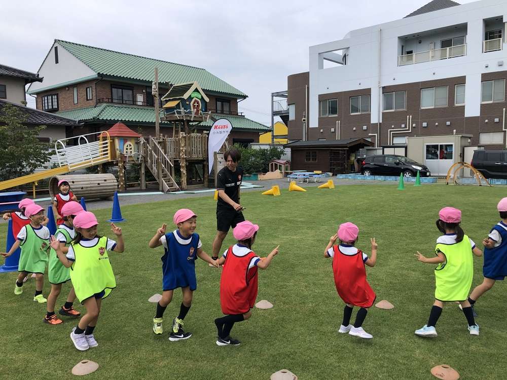 きれいな芝生の上で、熱い天気のなかでも休憩を取りながら楽しく安全に活動することができました。難しいことがあっても諦めずにチャレンジする姿勢は素晴らしかったです。