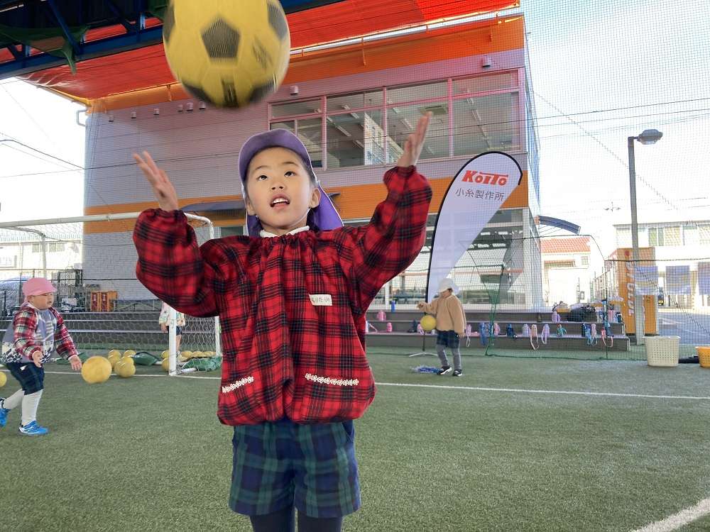 3つのお約束(コーチの話を聞く・転んでも泣かない・一生懸命頑張る)を守りながら、楽しんでサッカーをしていました。最後まで諦めず笑顔でよく頑張りました。