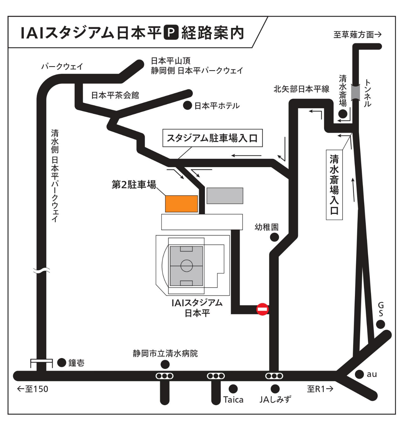 通常ホームゲームのスタジアム駐車場入口(スタジアム西側。遊具がある駐車場)となります。
