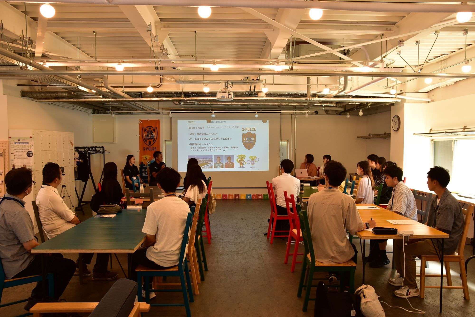 今回エスパルスのレポーターを務めた静岡大学3年生 高野美羽音さん、静岡大学2年生 平井朋美さんが約4ヶ月間、クラブへのインタビューや資料作成を行い、昨年9月30日(土)コワーキングスペース/シェアオフィス=ODENにて開催された座談会にクラブスタッフと共に参加しました。