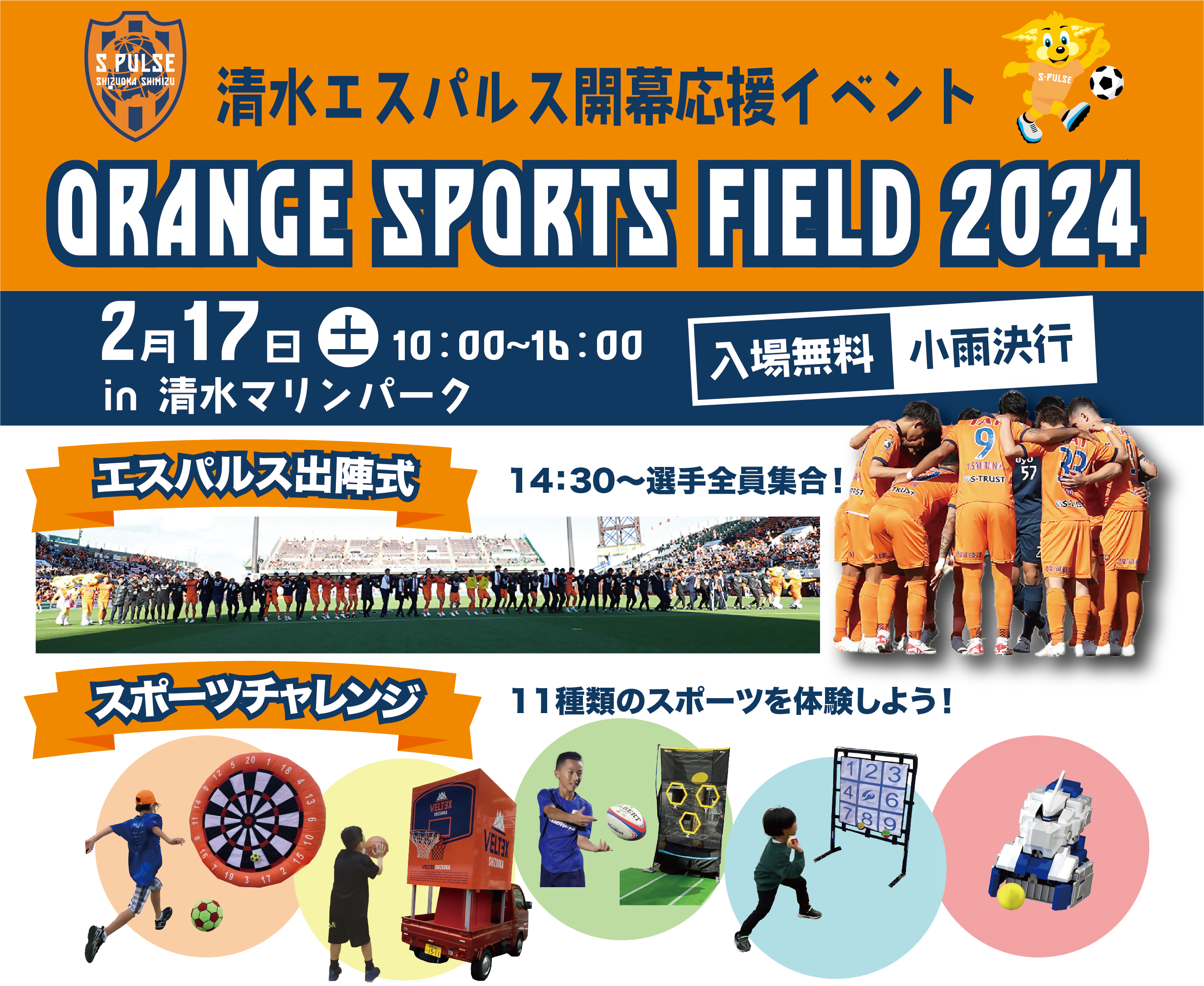 エスパルスは、2/17(土)にフォッサ・サッカーのまち市民協議会と静岡市との共催で、2024シーズン開幕応援イベント『ORANGE SPORTS FIELD 2024』を開催しますので、お知らせいたします。