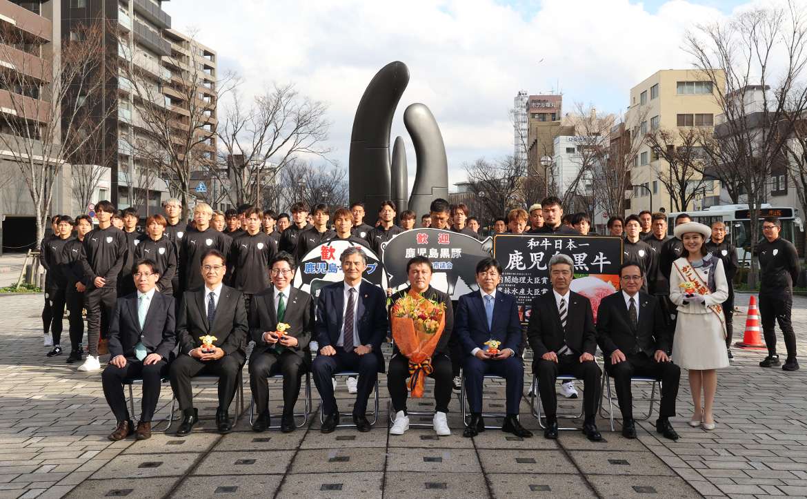ぜひともJ1復帰を目指し、日本一に輝いた鹿児島黒牛、鹿児島黒豚など鹿児島自慢の食でスタミナをつけていただき、また厳しいトレーニングの後は鹿児島が誇る温泉でリフレッシュしていただき、ぜひとも厳しいシーズンを戦い抜く力を蓄えていただきたいと思います。