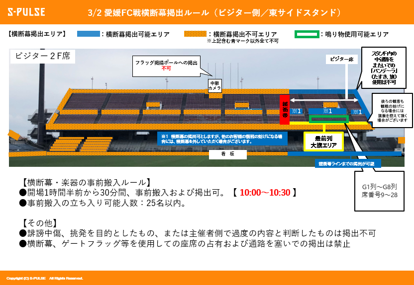 ・ビジターエリア(東サイドスタンド2F指定席の一部)を設置いたします。