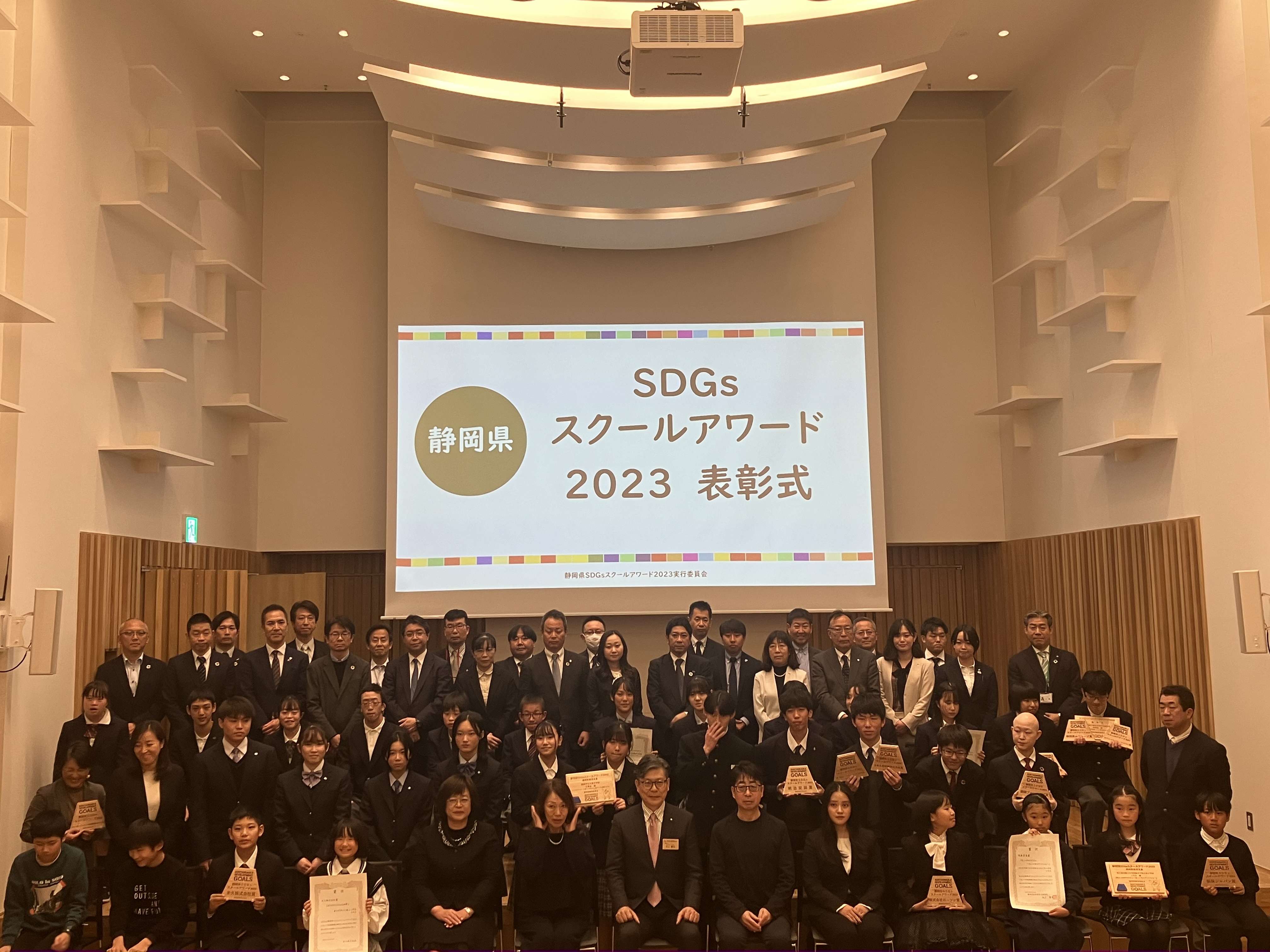 『静岡県SDGsスクールアワード』とは、静岡県の子どもたちが、持続可能な社会の創り手となり、県内にSDGsの理念を広く根付かせることができるよう、学校における児童・生徒のSDGs達成に向けた取組動画を募集し、優れた取組を表彰するものです。本年度は、県内147チームの応募がありました。
