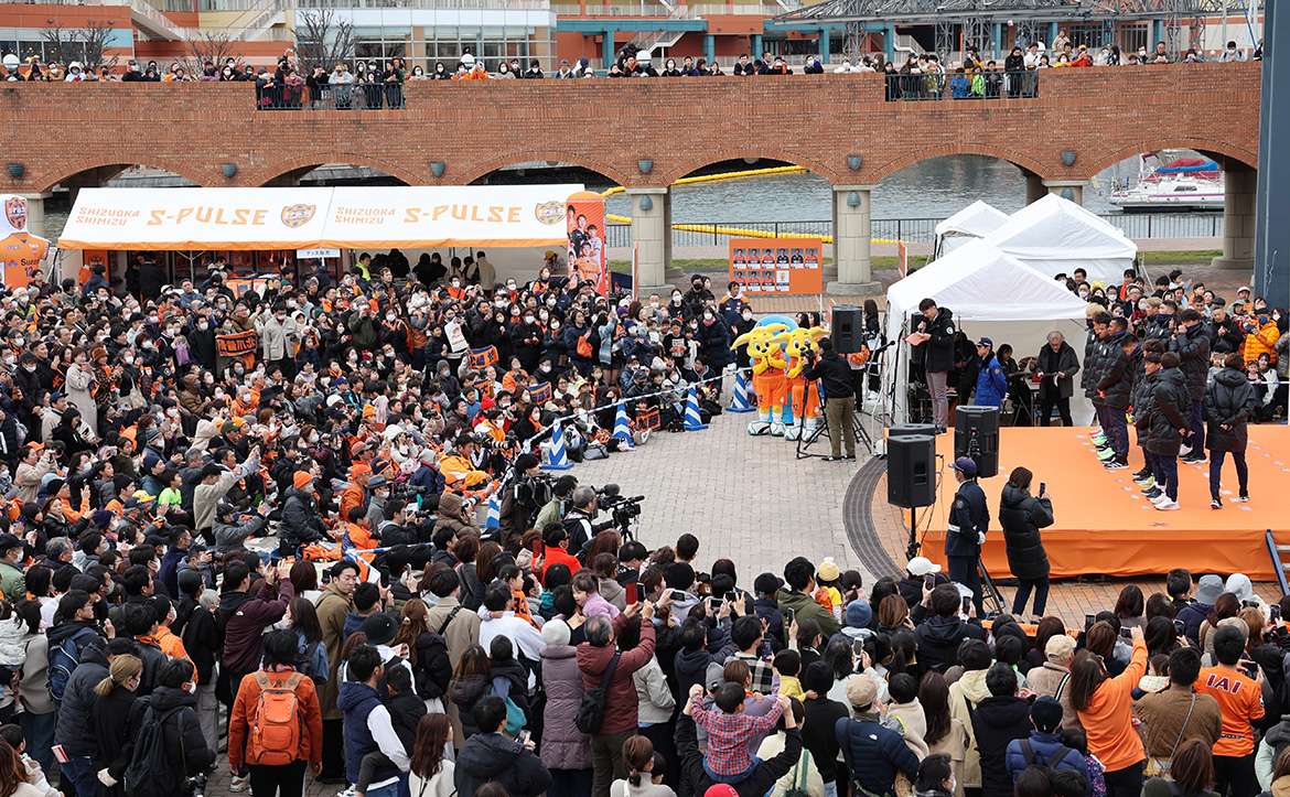 2/17(土)監督、選手、スタッフは必勝祈願を行った魚町稲荷神社から移動し清水マリンパークにて新シーズン応援イベント、「ORANGE SPORTS FIELD 2024」にて出陣式を行いました。出陣式には約2,000名のサポーターの皆様にお集まりいただきました。
