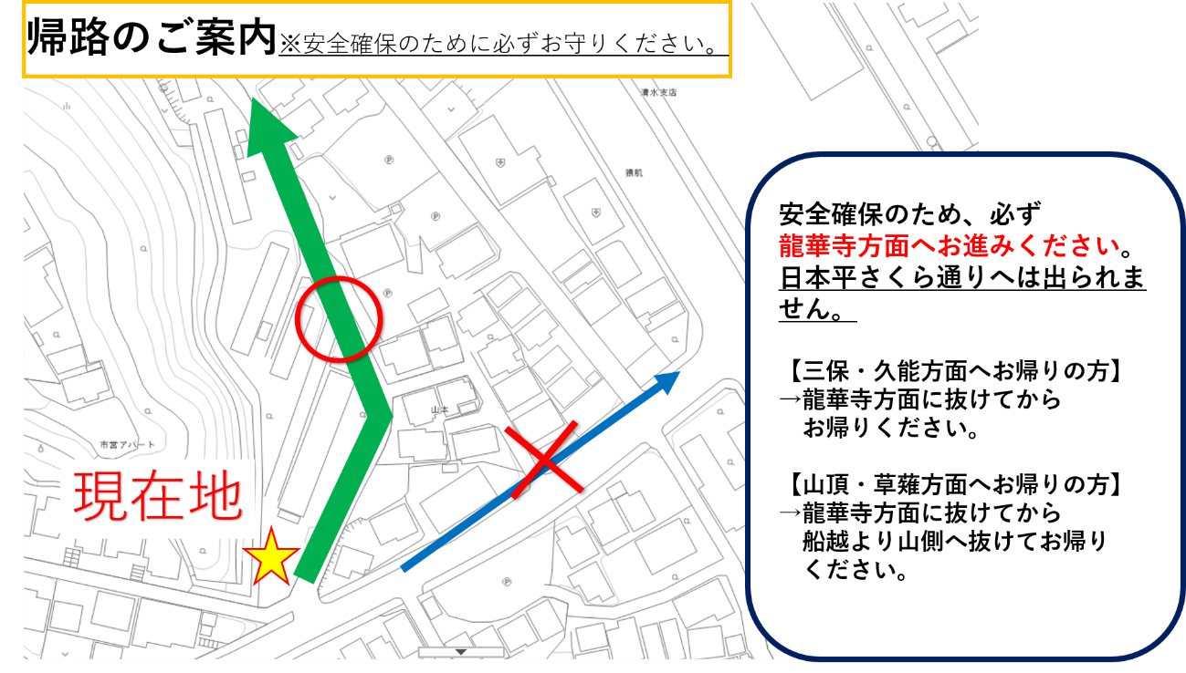 龍華寺方面へお進みください。日本平さくら通りへは出られません。