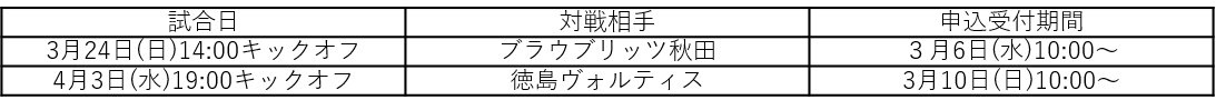 3/24(日)秋田戦は上限枚数に達した為、終了しました。