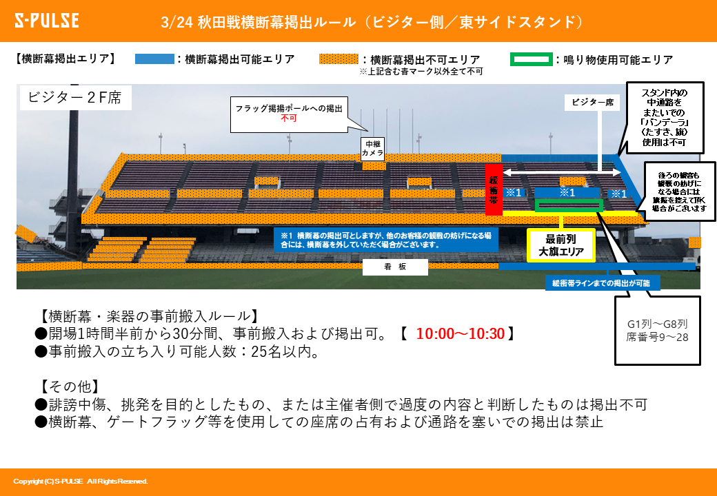 ・ビジターエリア(東サイドスタンド2F指定席の一部)を設置いたします。