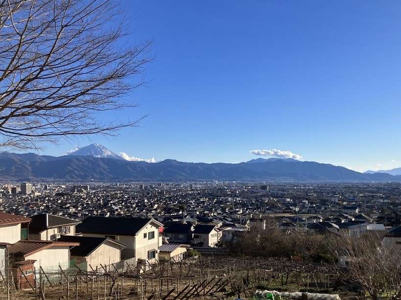 写真は当時、住んでいた付近からの景色と自分の母校、韮崎高校です。
