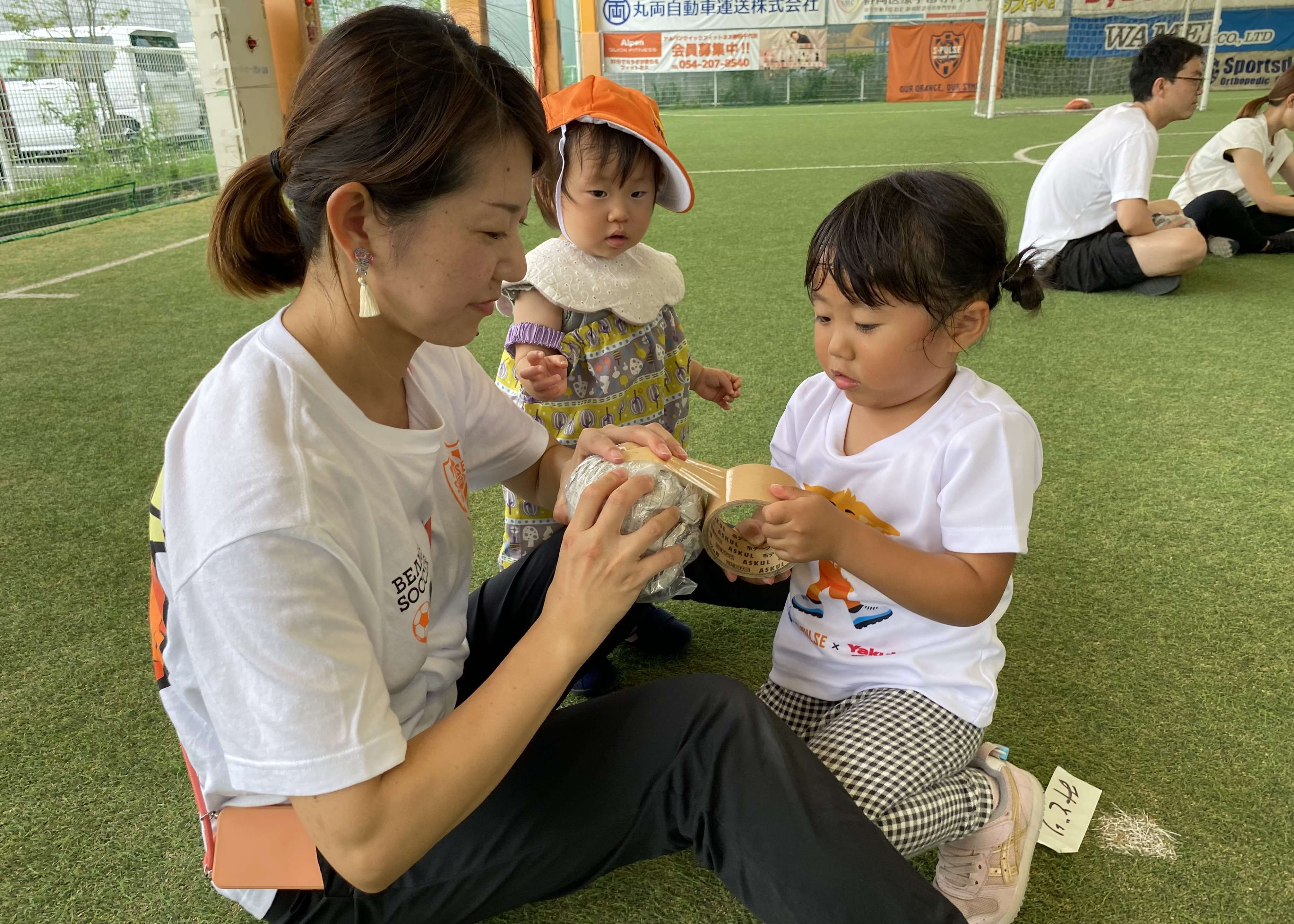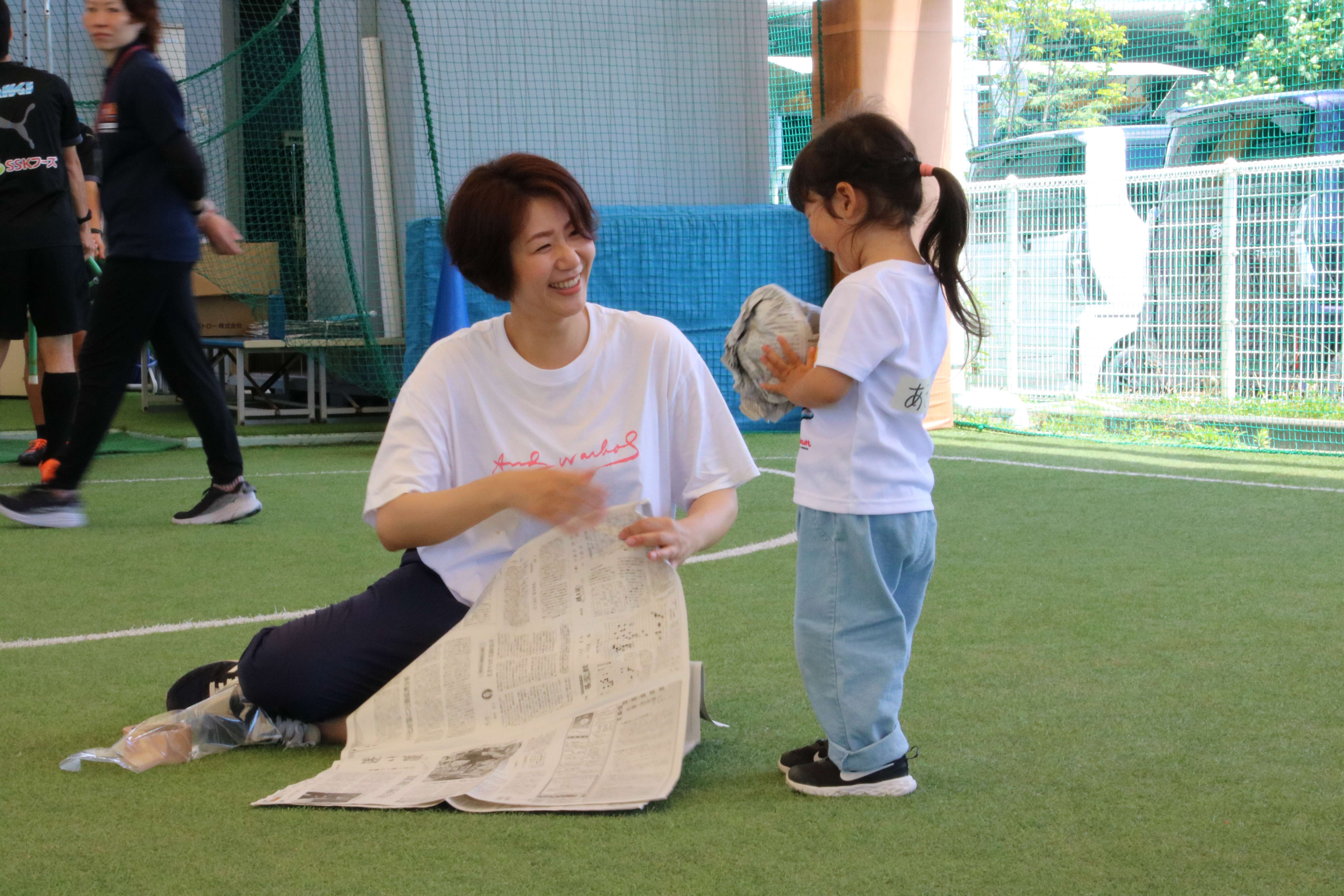 親子で新聞紙を丸めてサッカーボール作りにチャレンジします。手先を使ってモノを作る「工作」は子どもの成長には欠かせない重要な要素の1つとなります。工作を取り入れることで子供たちの好奇心に刺激を与え、集中力を高めます。