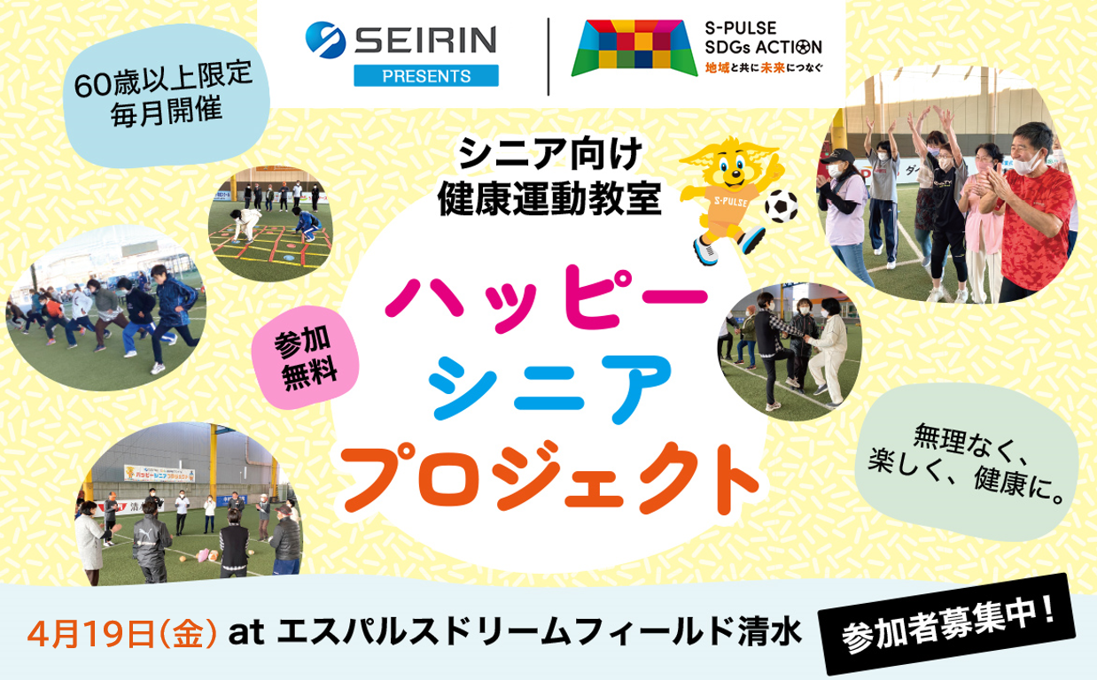 2024年度、エスパルスドリームフィールド清水(静岡市清水区袖師町)にて、SDGs健康増進プログラム セイリン PRESENTS 「ハッピーシニアプロジェクト」 ~運動とはりで健康に~ の開催が決定しましたので、お知らせいたします。