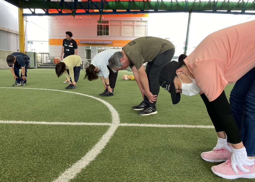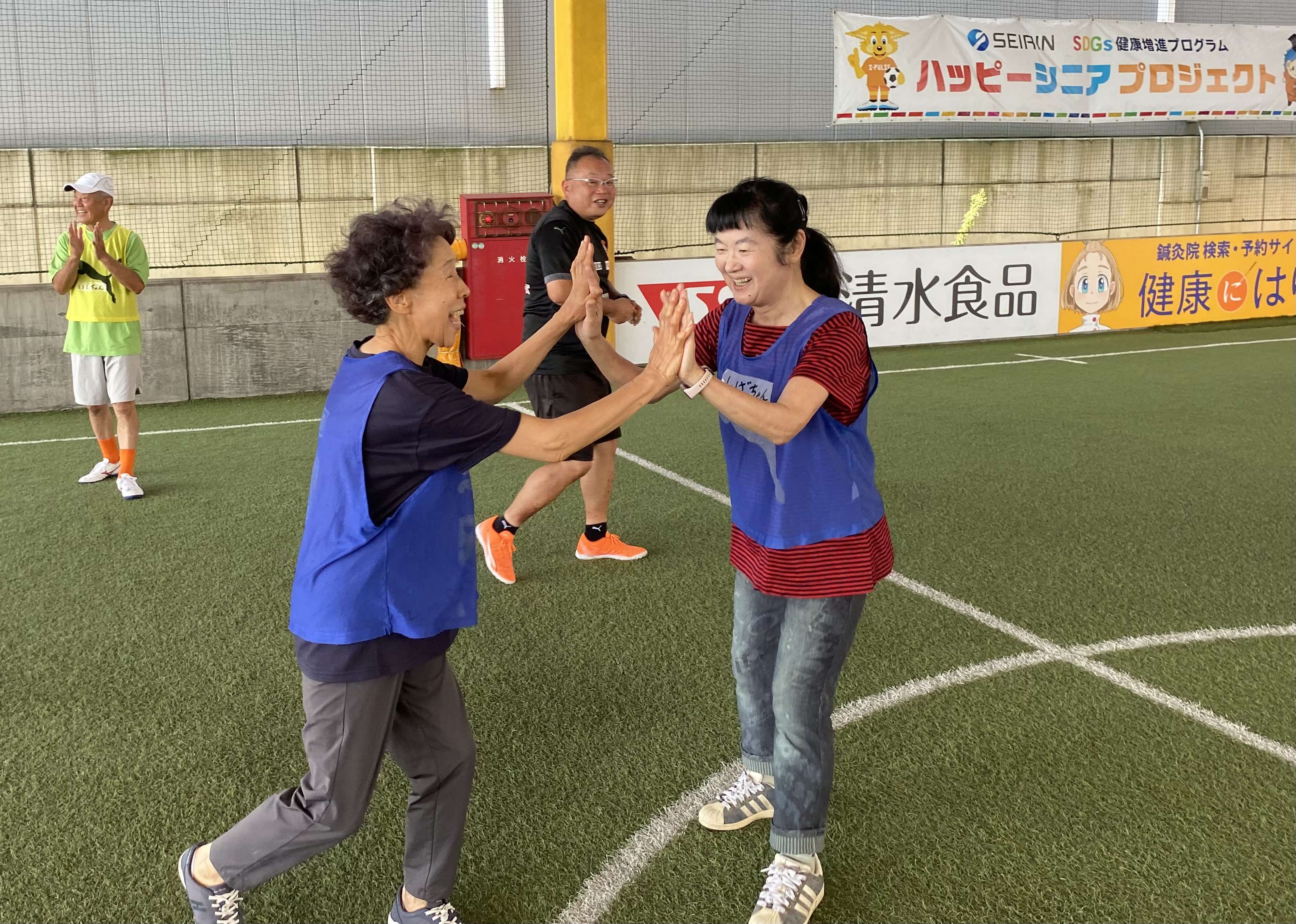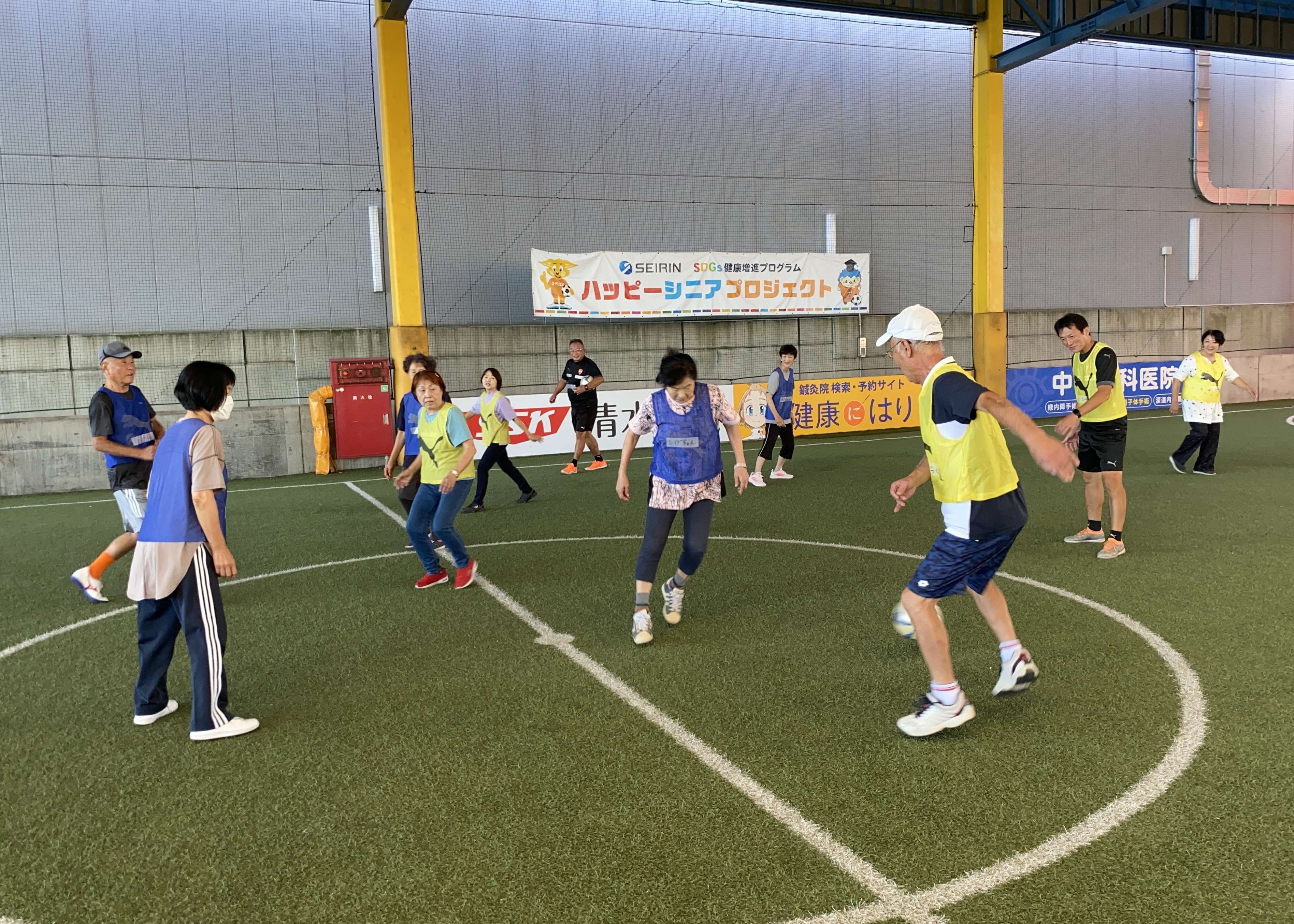 走るのも、ぶつかるのも禁止のウォーキングフットボールは、体力に自信がない方でも怪我無く安心です。今回初めてチャレンジした皆さんも、普段サッカーをプレーすることが全くない皆さんでも、楽しく安全にプレーすることができました。ゴールが決まった瞬間には、チームメイトと喜びを共有しあい、身体や脳の活性化だけでなく、コミュニティの場としても非常に楽しい時間を過ごしていただけます。