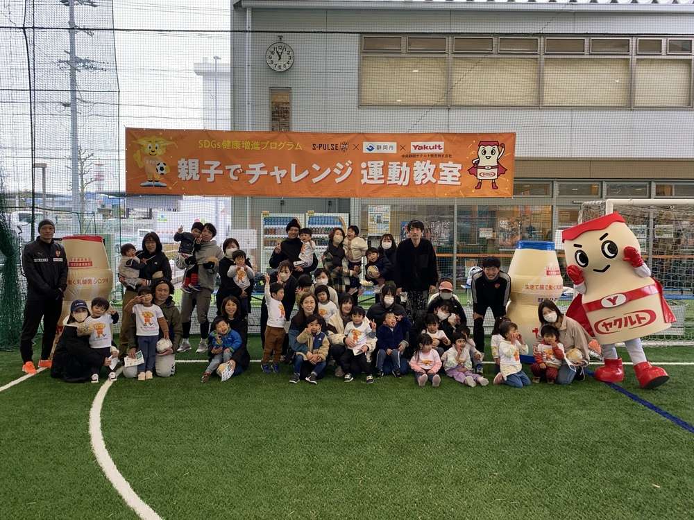 3月7日(木)エスパルスドリームフィールド静岡にて、第12回SDGs健康増進プログラム 静岡市 PRESENTS 「親子でチャレンジ運動教室」Supported by ヤクルトを開催しました。2023年度12回目開催となる本日は、21組の親子の皆様にご参加いただきました。