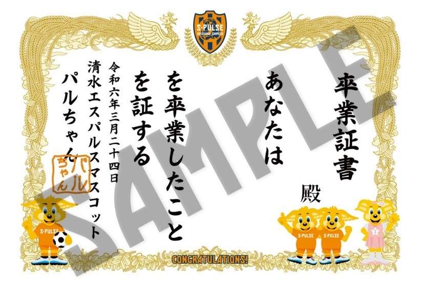 ○○卒業した皆さまへ「エスパルス卒業証書」プレゼント!