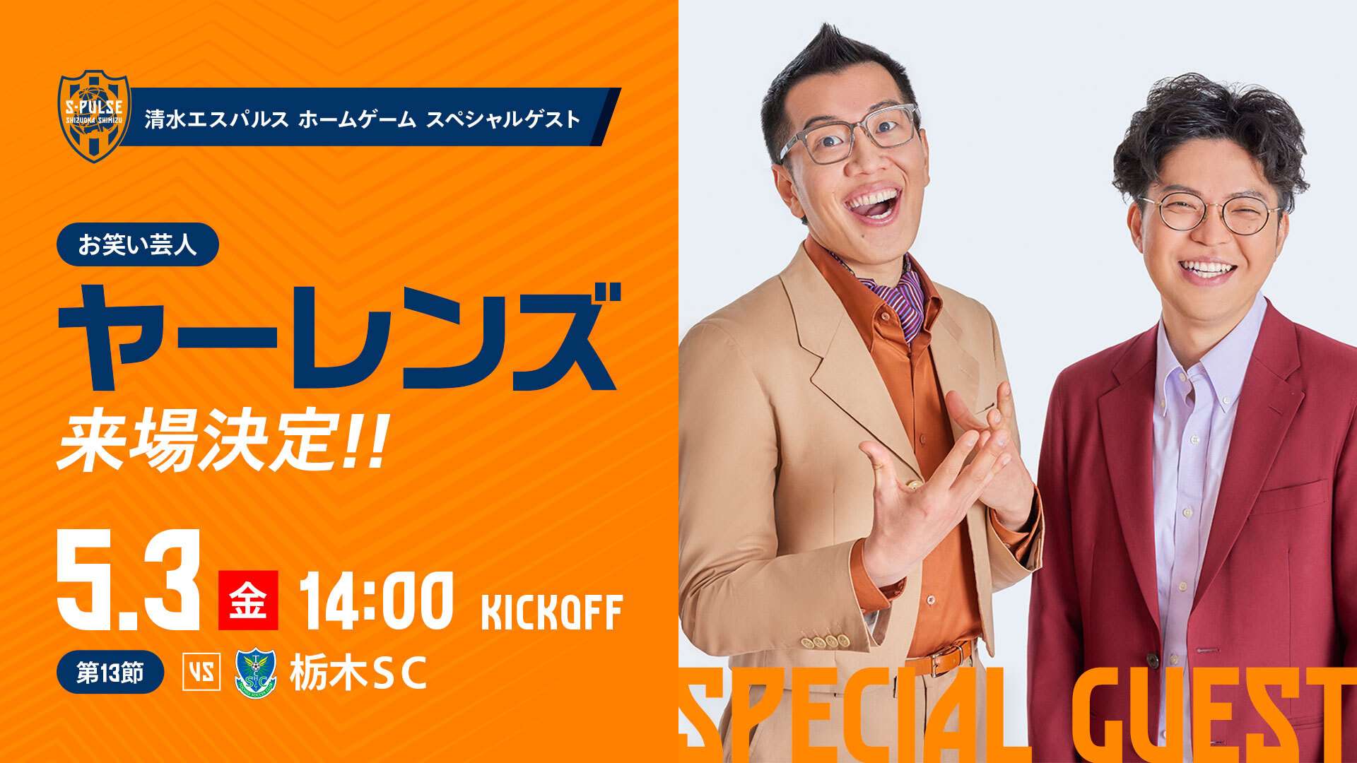 5/3(金祝)明治安田J2リーグ第13節栃木SC戦に、M-1グランプリ2023ファイナリストであるお笑い芸人「ヤーレンズ」のお二人がIAIスタジアム日本平にご来場することになりましたので、お知らせいたします。