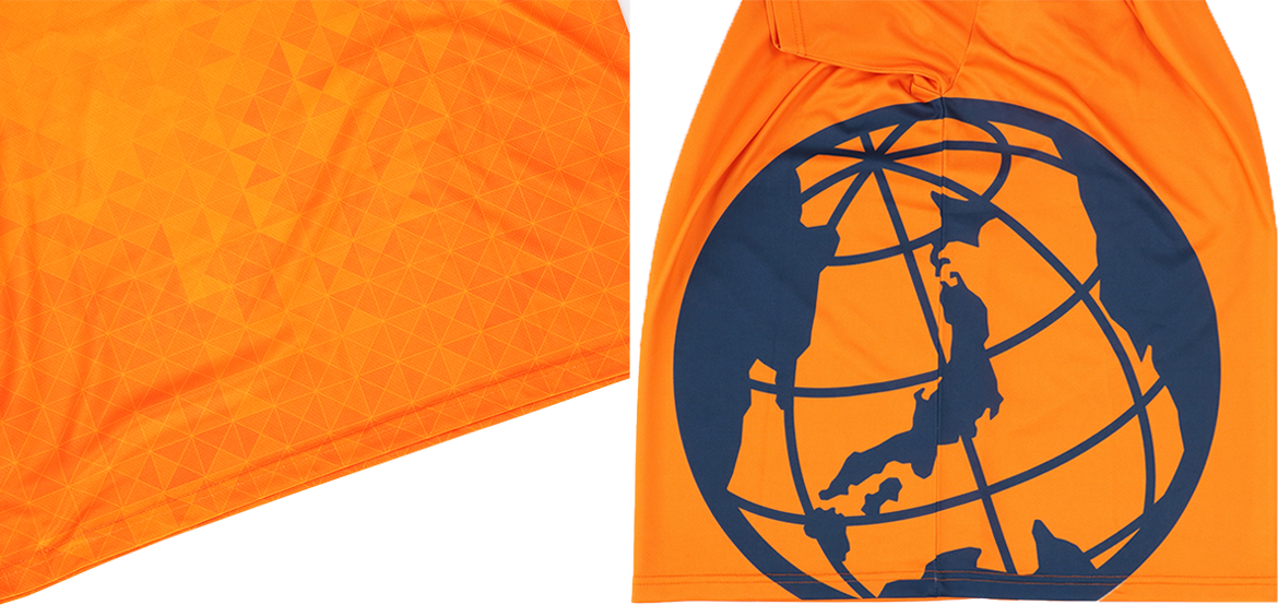 幾何学模様をデザインしたジオメトリー柄と、エスパルスエンブレムにもデザインされている地球を側面に大きくデザインした地球柄を展開。エスパルスオリジナルフォントである「ドリブルフォント」のネーム&ナンバーを、2024シーズンの選手展開で加工できます。