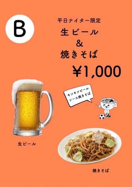 ②汐のや 【メインスタンド】 Ⓑ生ビール&焼きそば 1000円