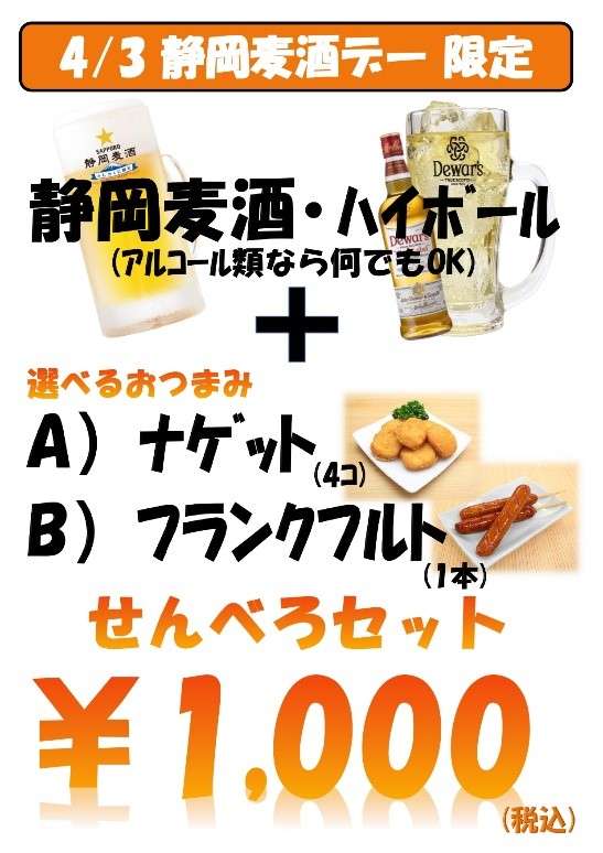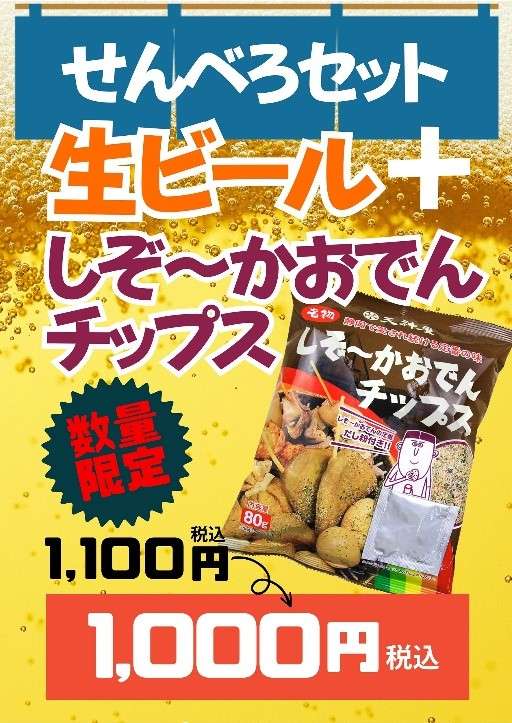(バック売店とせんべろセットの内容が違います。ご注意ください。)
