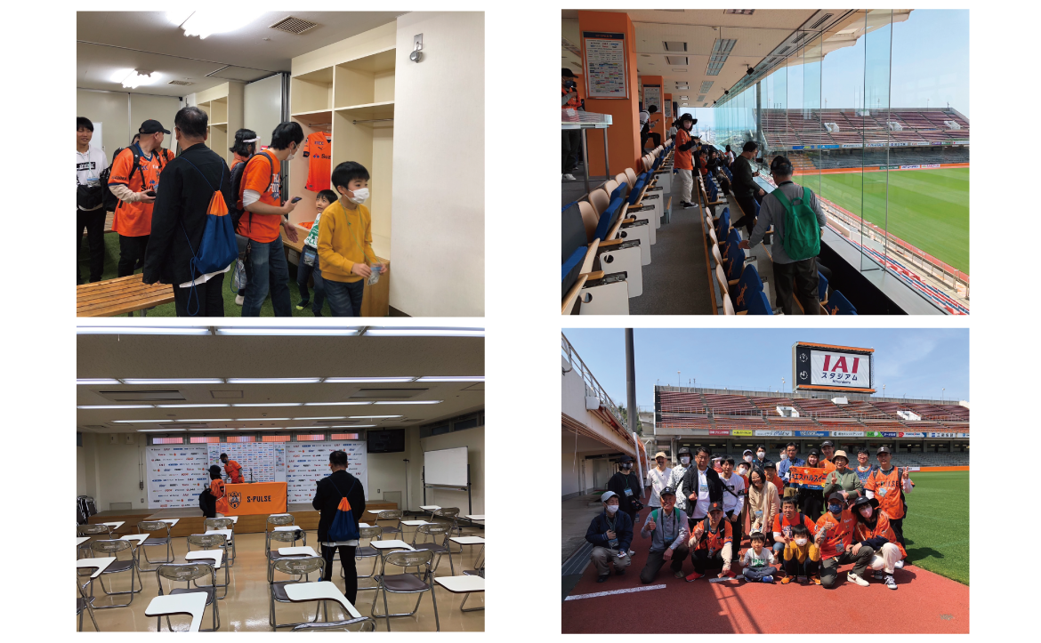 ホームゲーム開催日にはご覧いただけないロッカールームやVIPルームなど、アイスタ内を1時間弱かけてぐるりと一周回るコースでご案内し、特典の「日本平スタジアムオリジナルグッズ」や、アイスタの芝の種をプレゼントさせていただきました。