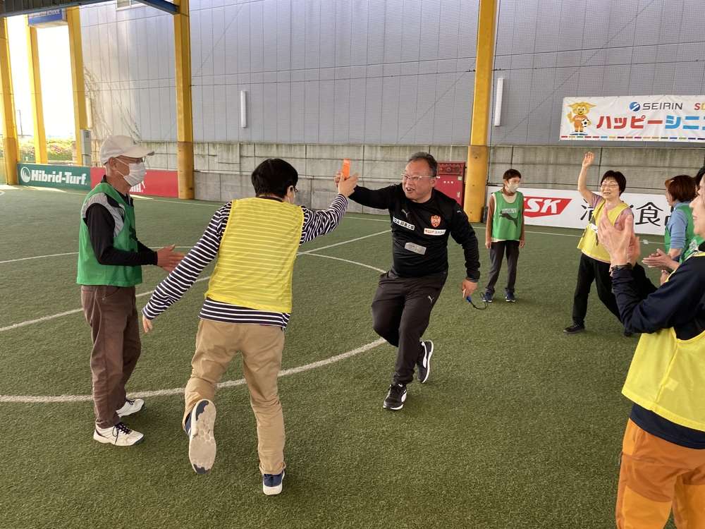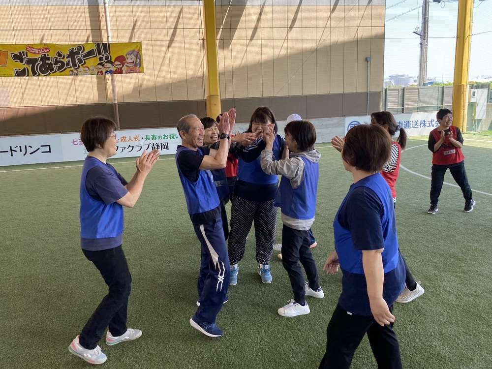 走るのも、ぶつかるのも禁止のウォーキングフットボールは、体力に自信がない方でも怪我無く安心です。今回初めてチャレンジした皆さんも、普段サッカーをプレーすることが全くない皆さんでも、楽しく安全にプレーすることができました。ゴールが決まった瞬間には、チームメイトと喜びを共有しあい、身体や脳の活性化だけでなく、コミュニティの場としても非常に楽しい時間を過ごしていただけます。
