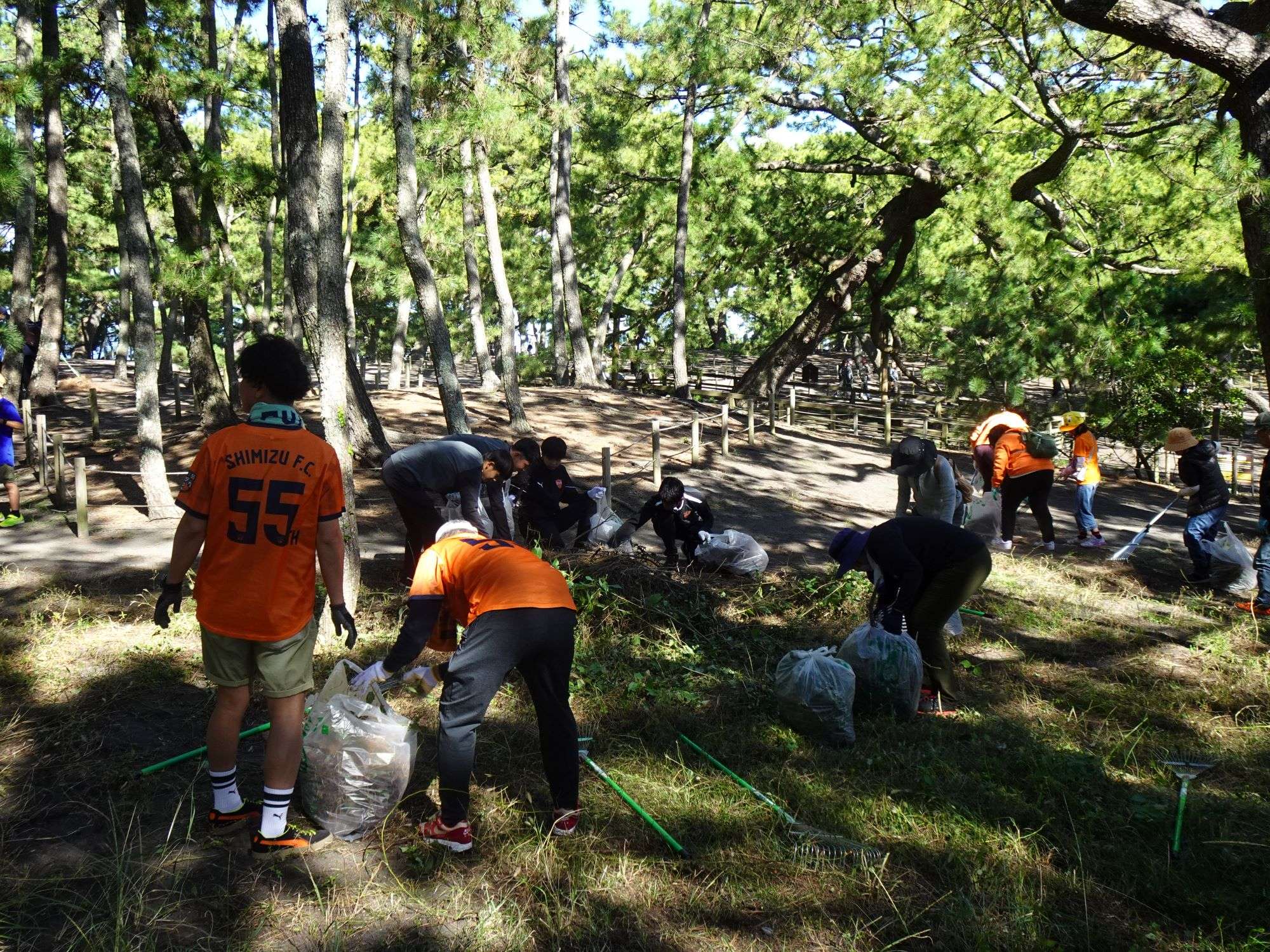 エスパルスの試合観戦・練習見学や三保観光と一緒に、簡単な松葉かきボランティアに参加してみませんか?エスパルスファミリーのチカラで三保松原を守っていきましょう。たくさんのご参加お待ちしております。