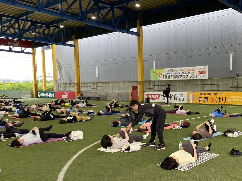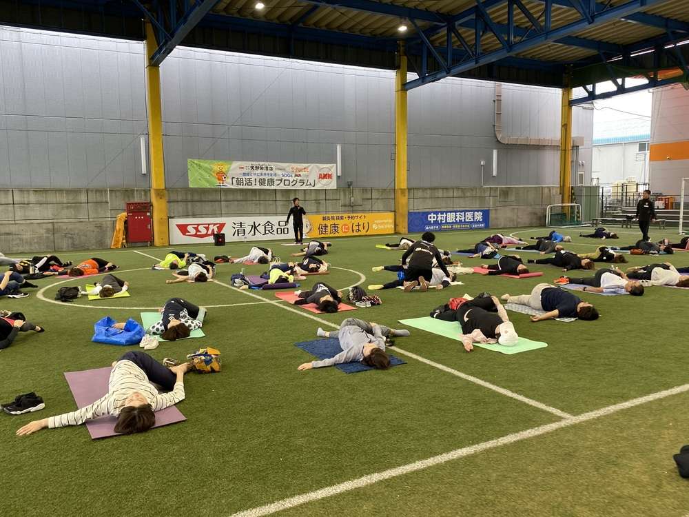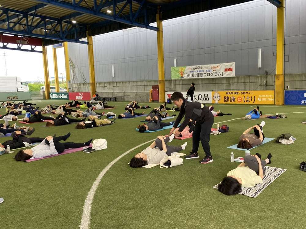 「腰痛・肩こりコース」を、4月27日(土)7時30分より、エスパルスドリームフィールド静岡にて開催し、61名の皆様にご参加いただきました。