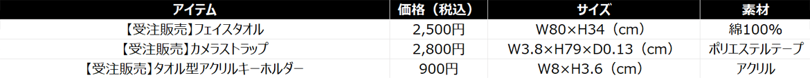 フェイスタオル、タオル型アクリルキーホルダー 6月上旬頃