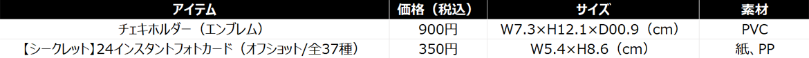 カメラの必需品であるカメラストラップのほか、シークレット商品として選手が練習やキャンプで実際に撮影したオフショットをデザインしたインスタントフォトカードや、お気に入りのフォトカードを入れられるチェキホルダーなどを展開。