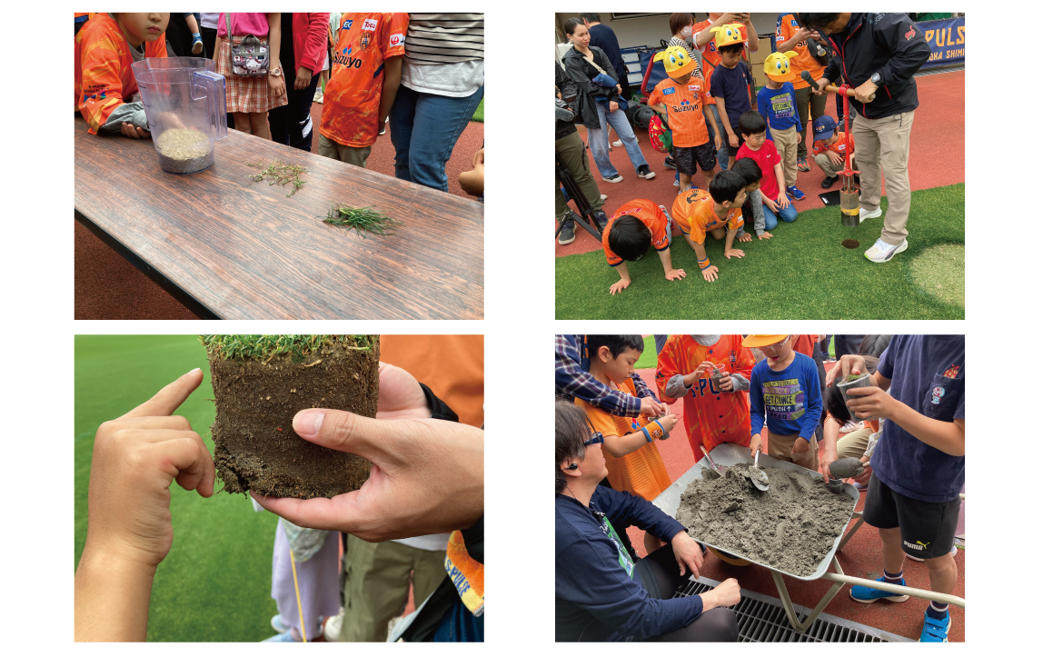 ご参加の皆様だけが知ることとなった「アイスタの芝の秘密」のお話も。実際に「ポット苗」を作ってアイスタのピッチの一部をお持ち帰りいただきました。
