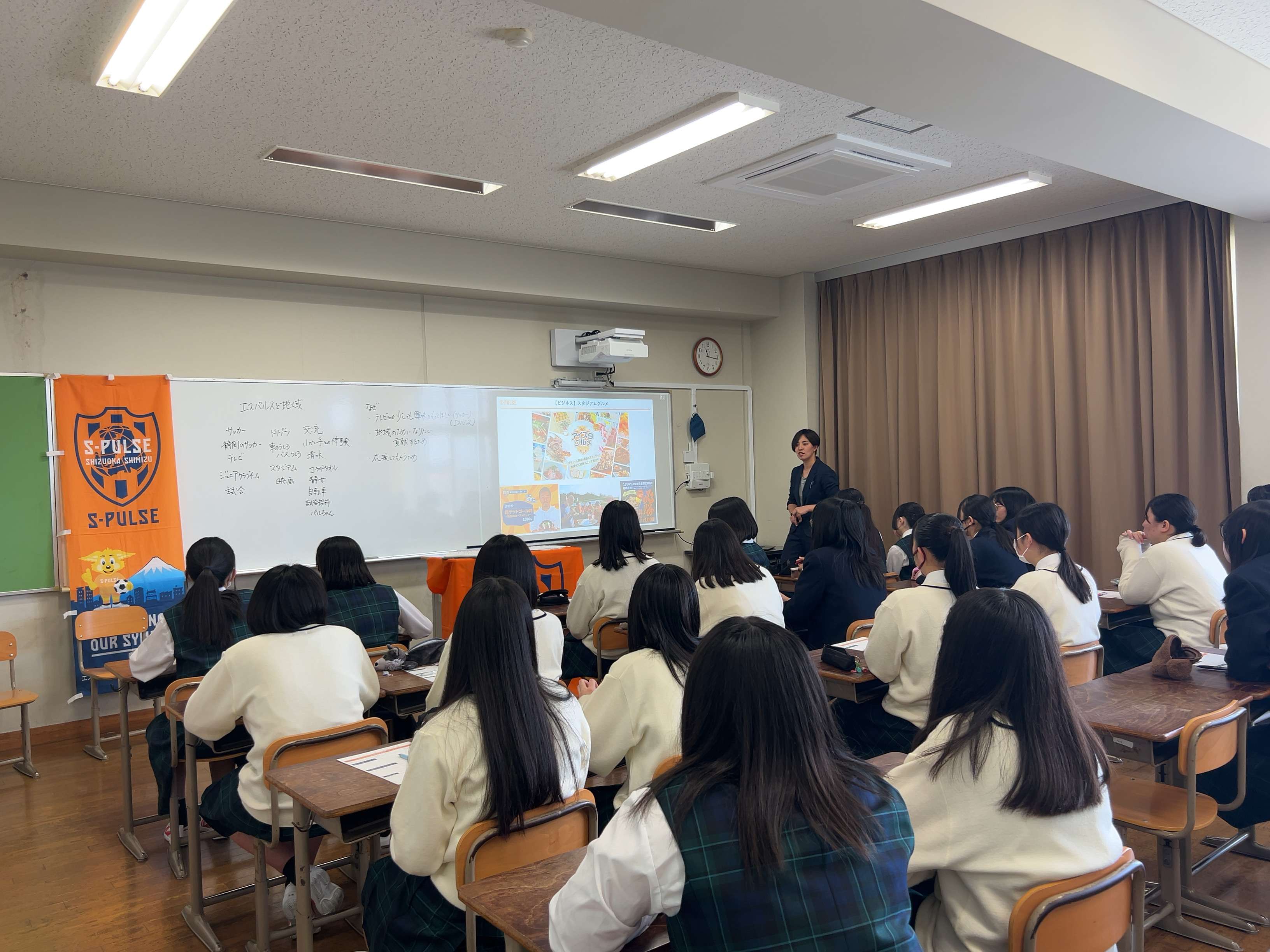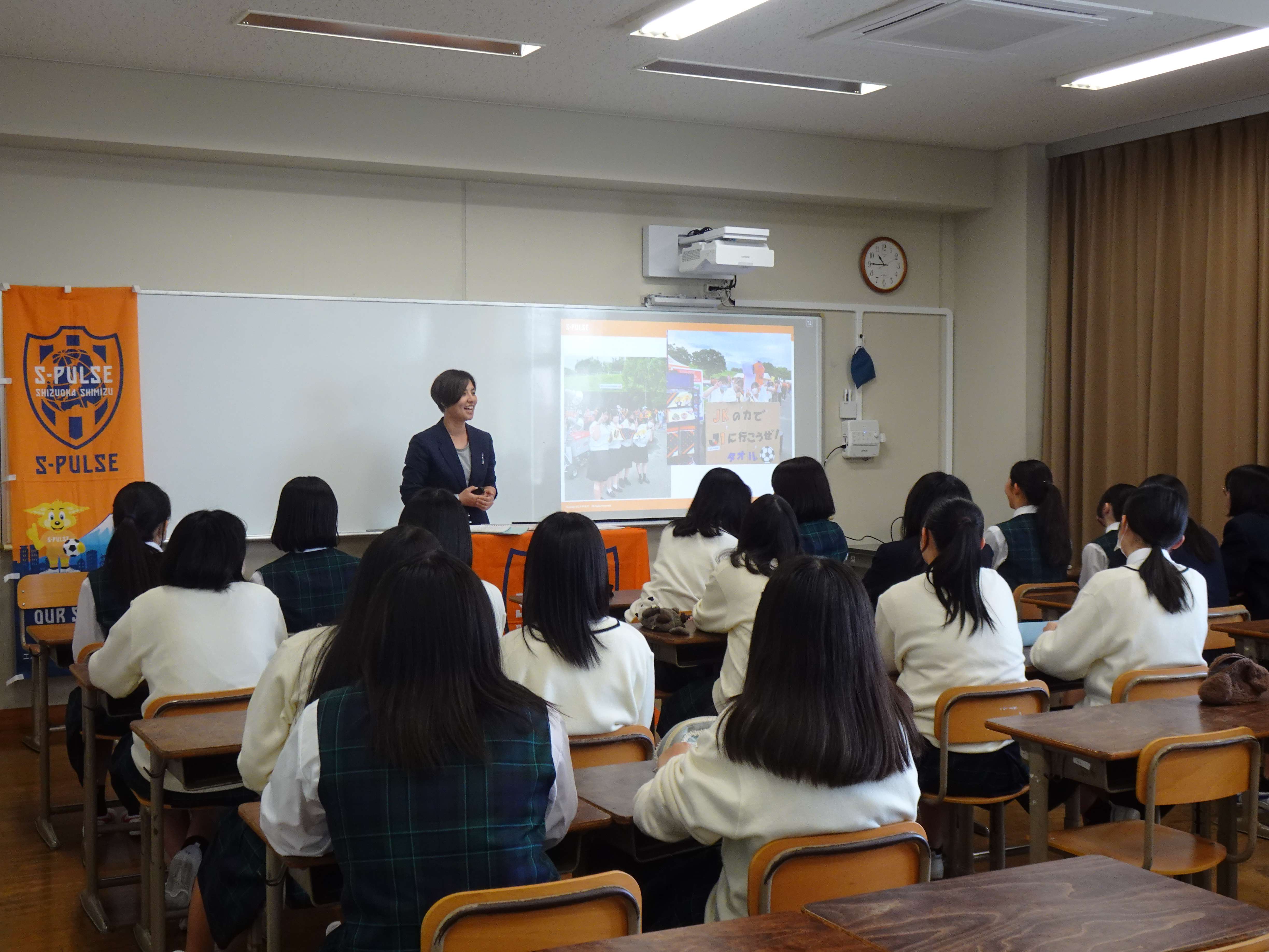 『エスプラス』は「エスパルス」に様々な内容を「プラス」して学ぶキャリア教育授業。今回は高校編として、4/25(木) 静岡女子高等学校にて、「エスプラス キャリア教育授業 ~クラブと地域との関わり~」の授業を実施し、(株)エスパルス ホームタウン事業部の大河紗弓が講師を務めました。