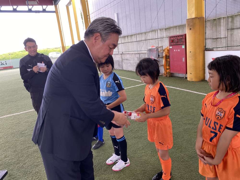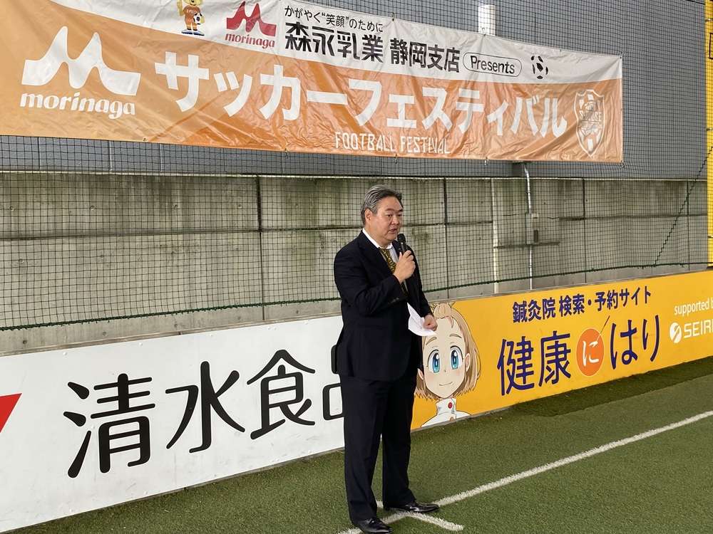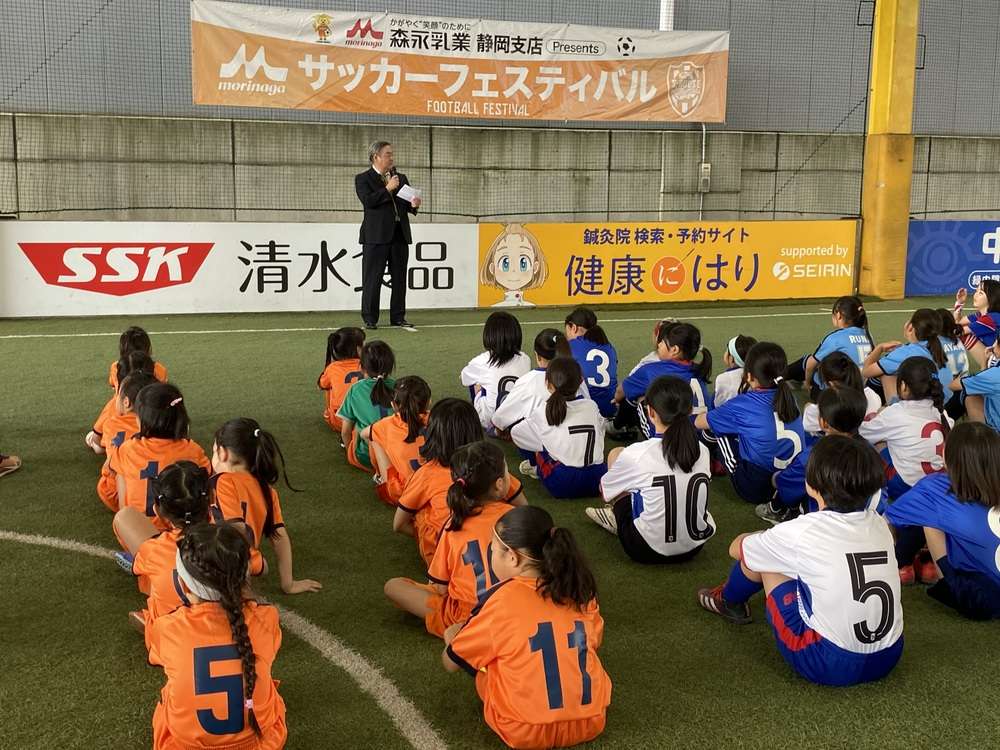 その後、森永乳業株式会社静岡支店の森俊郎 支店長にご挨拶いただき、『SDGs Jクラブガールズサッカーフェスティバル&ジュニアスポーツ栄養講座』がスタートしました。