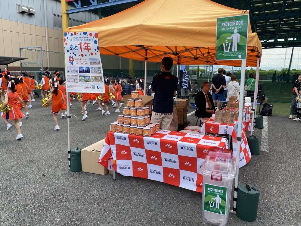 森永製品を販売するブース出展及び紙パック飲料専用回収ボックスを設置しました。飲み終えた紙パック飲料は水洗い・平らに開く・乾燥後回収ボックスへ投函。集められた紙パックはトイレットペーパーへリサイクル!