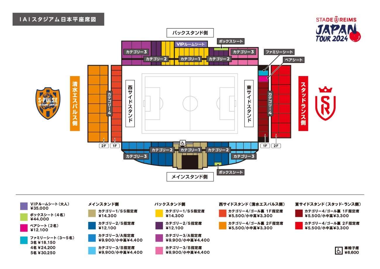 ・カテゴリー4(ゴール裏)は、清水エスパルス側(西側)2F指定席のみ、相手チームユニフォーム等応援グッズを着用しての観戦はできません。清水エスパルス側(西側)2F指定席以外、ユニフォーム等応援グッズの着用制限はございません。
