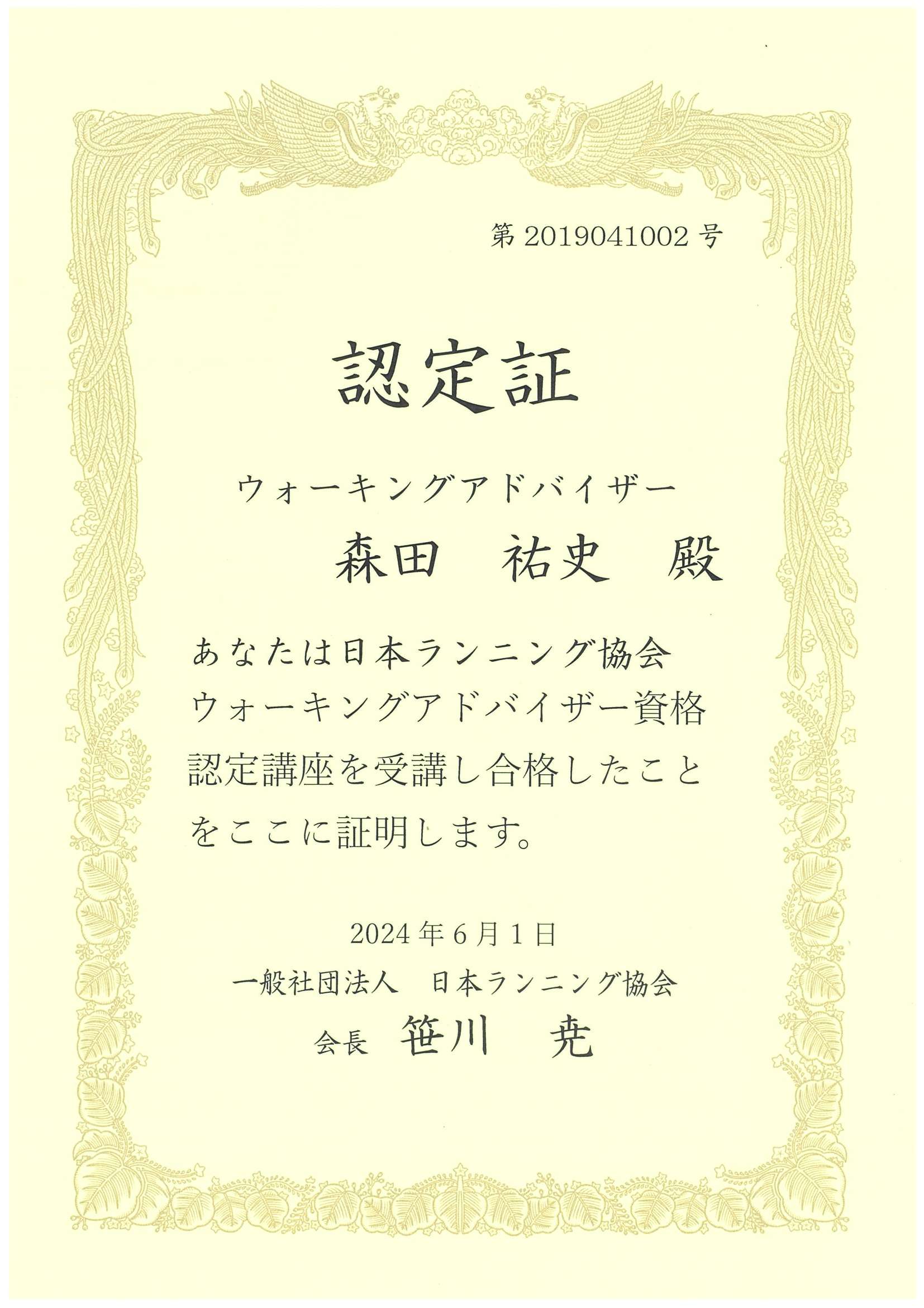 6月に東京にて、ウォーキングアドバイザー資格を取得。