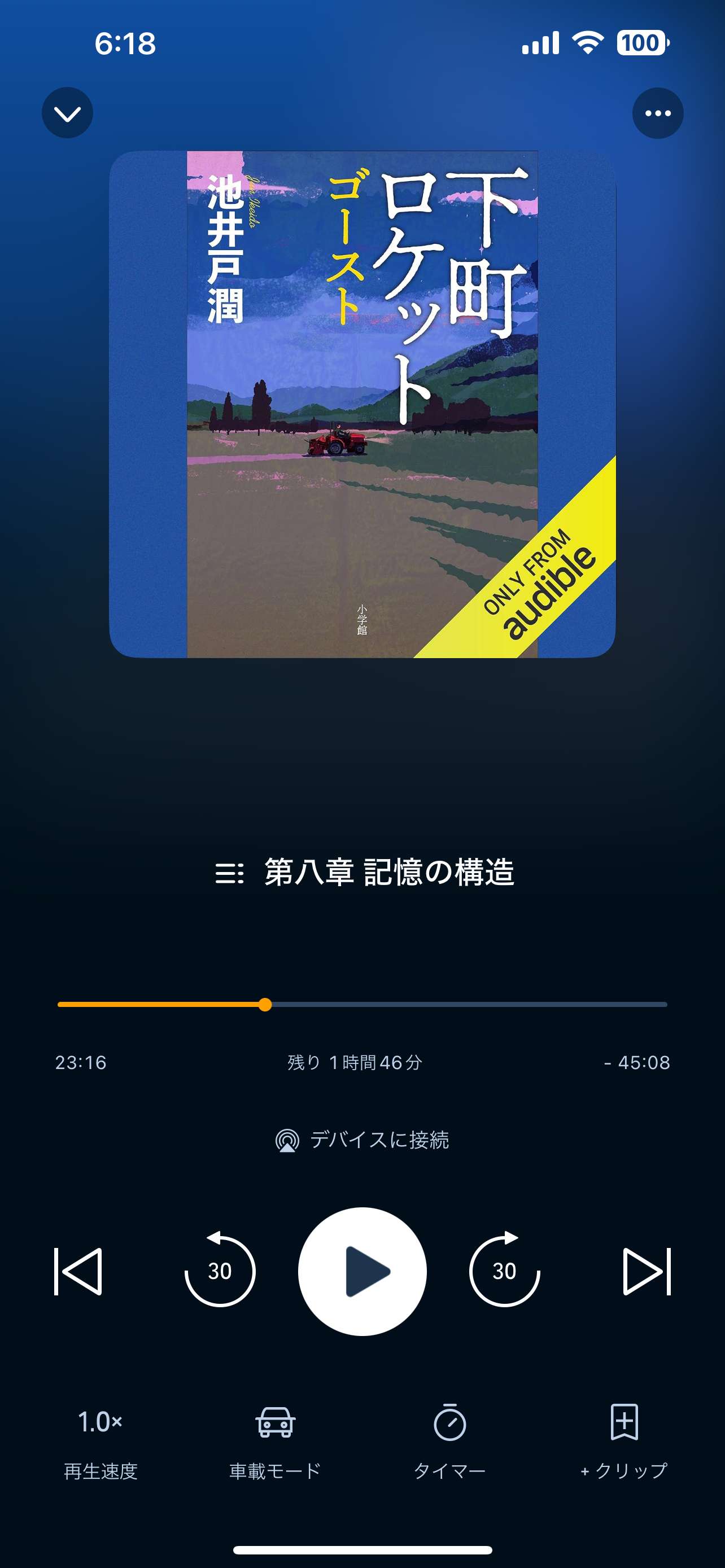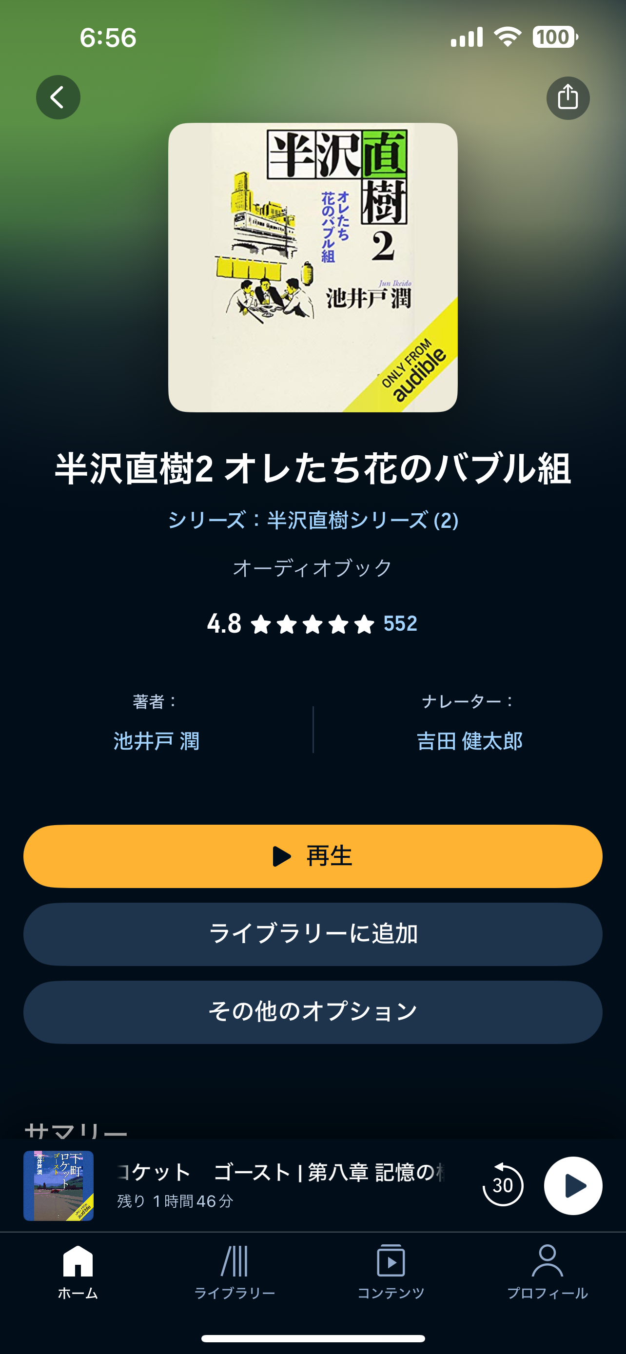 お気に入りは、池井戸潤の作品だ。半沢直樹、花咲舞が黙ってない、七つの会議、ノーサイドゲーム、ルーズベルトゲームなどはすべて聞いた。