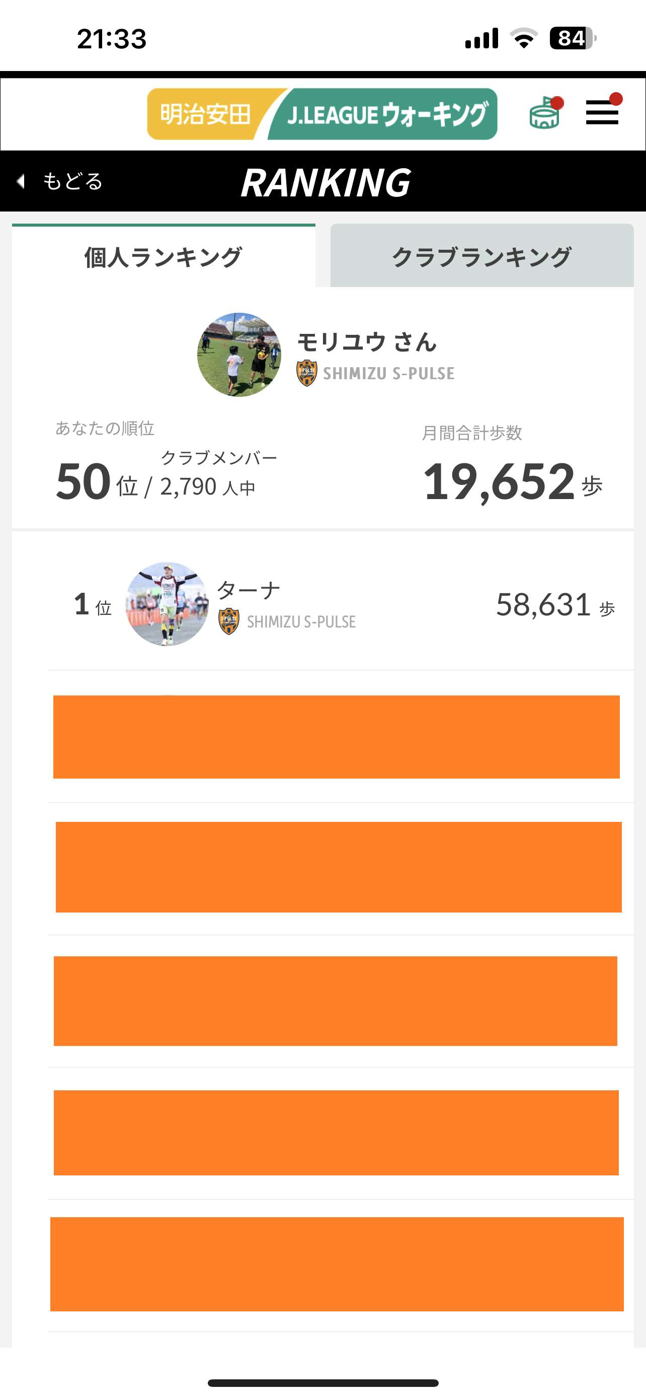 明治安田 J LEAGUE ウォーキングだ。歩いた歩数が反映されるアプリで、好きなJクラブに登録し、その中で歩数がランキングされる。もちろん、清水エスパルスで登録。