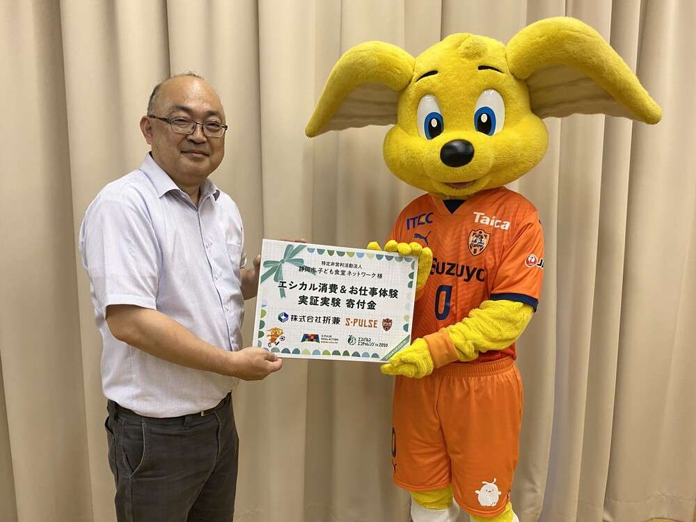 2024年6月24日(火)、エスパルスは株式会社折兼様と共に、SDGs環境教育プログラム『エシカル消費実証実験&お仕事体験企画』にて得られた収益の一部を「静岡市子ども食堂ネットワーク」に寄付させていただくこととなり、贈呈式を実施いたしました。