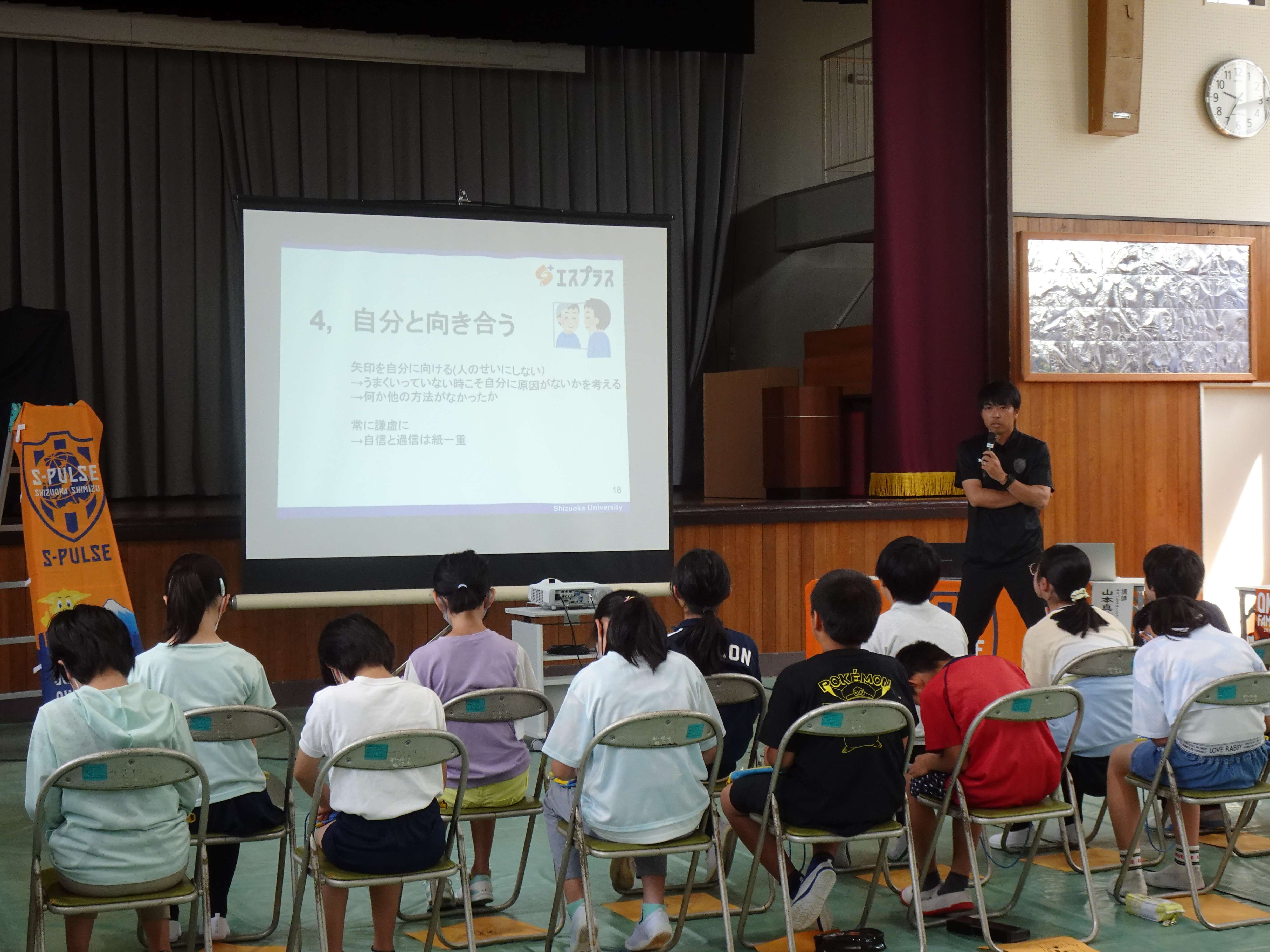 「エスパルス」に様々な内容を「プラス」して学ぶキャリア教育授業として実施している『エスプラス』は、エスパルスの選手、スタッフ、また地元企業の社員がゲスト講師となり、静岡市内の小中学校を訪問し児童生徒と共に学ぶ‘ホームタウン次世代育成プロジェクト’。2021年度よりホームタウン静岡市に加え、ファミリータウンでも授業を展開しています。