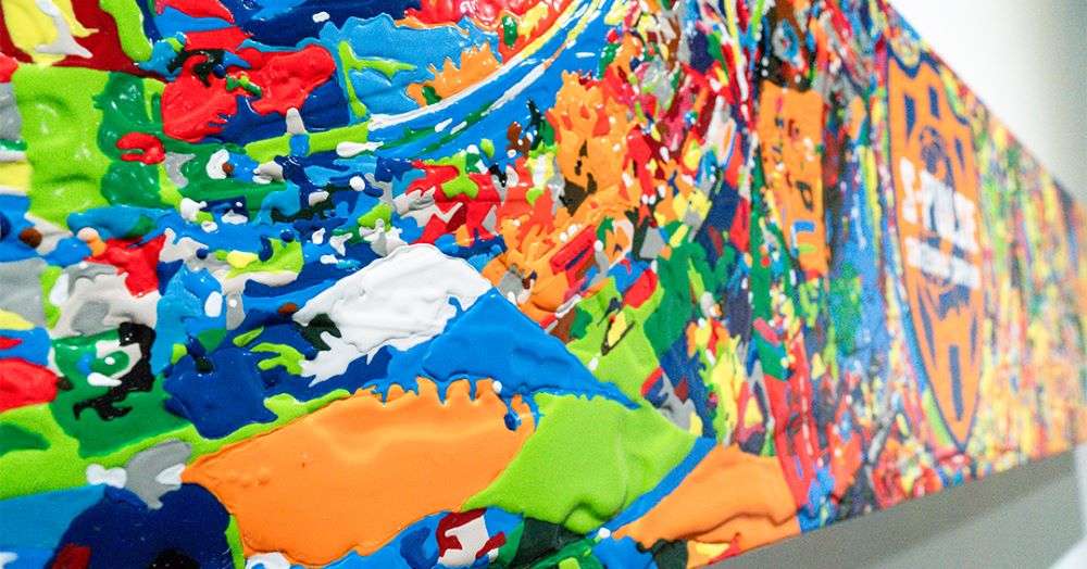 このワークショップで、子どもたちの自由な発想を大切に、全員の力を合わせて制作した1枚の絵画を、GALLERY TOMO所属近藤大祐氏に作品化いただきました。