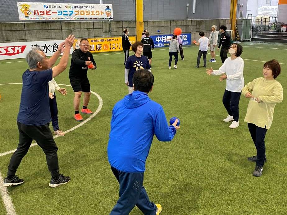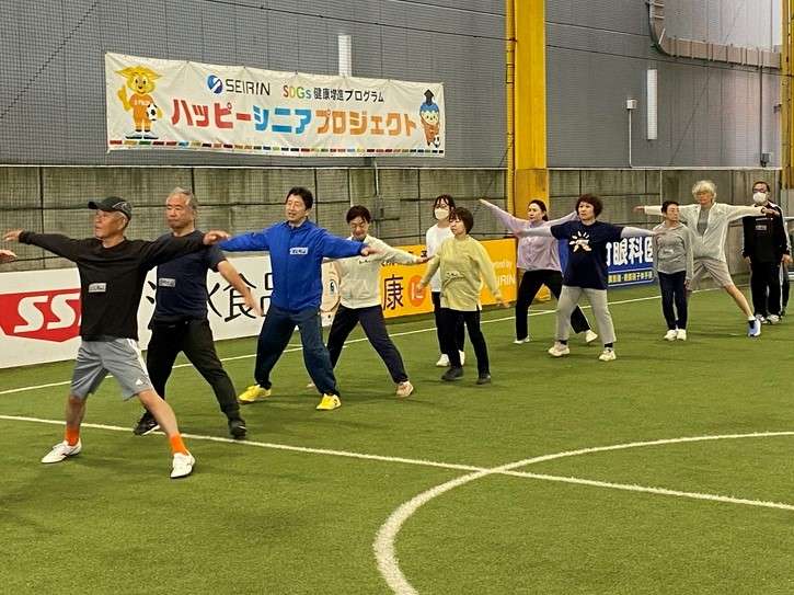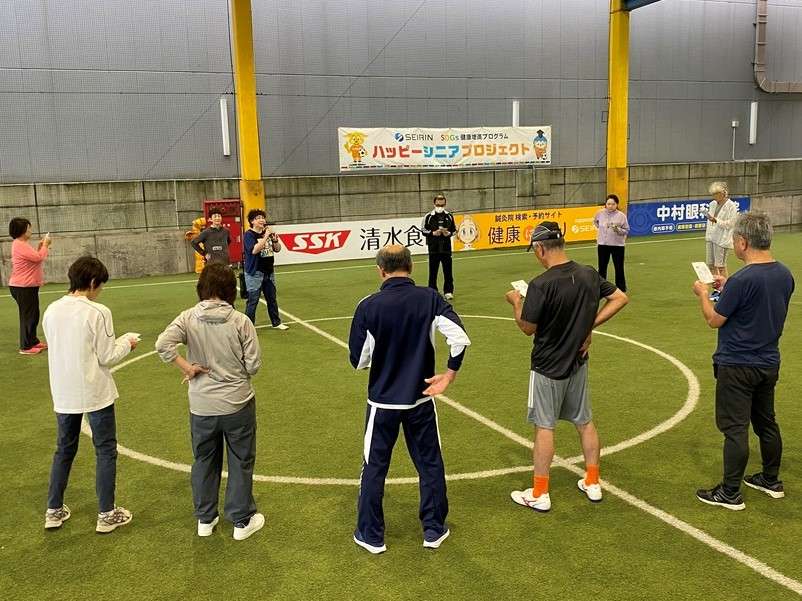 エスパルスドリームフィールド清水(静岡市清水区袖師町)にて、SDGs健康増進プログラム セイリン PRESENTS 「ハッピーシニアプロジェクト」 ~運動とはりで健康に~ 2024年度の3回目を6/22に開催し21名の皆様にご参加いただきました。