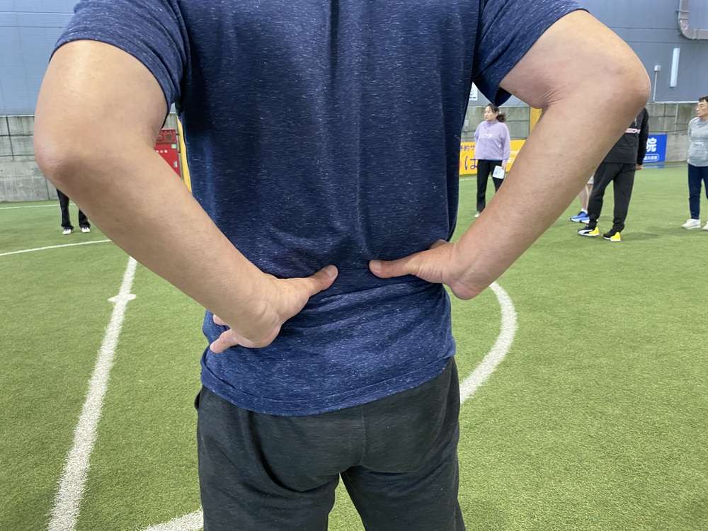 また、鍼灸師によるセルフツボ刺激についてレクチャーを実施し、今回は腰のツボをセルフケアしました。
