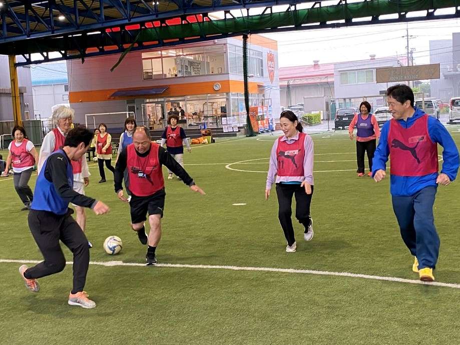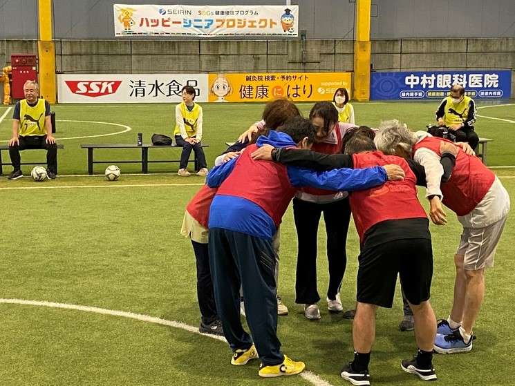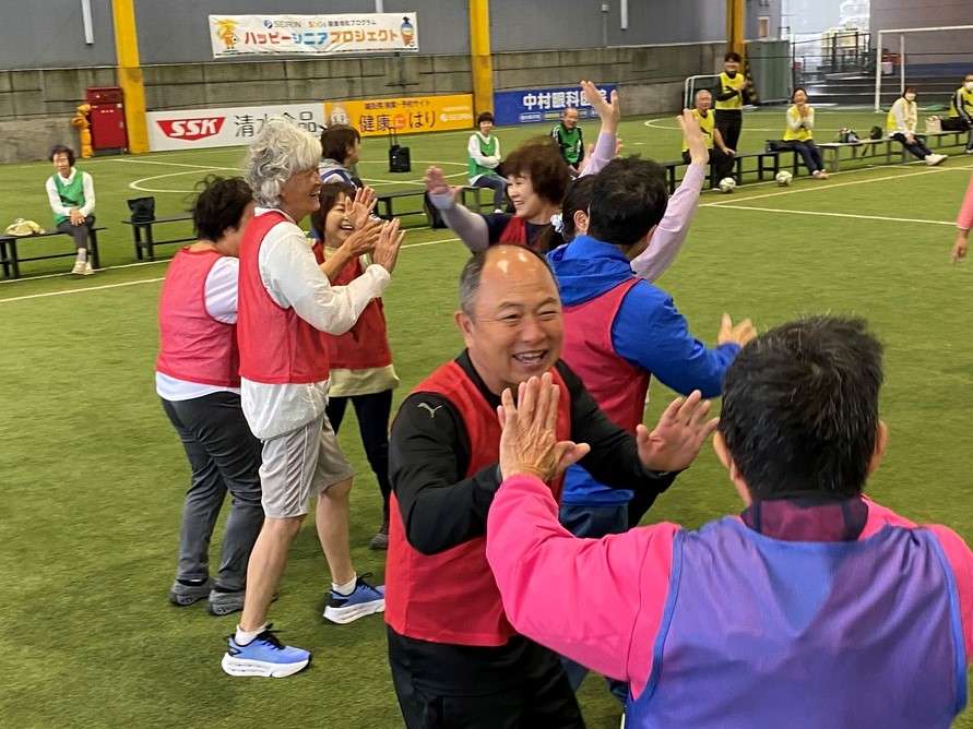 走るのも、ぶつかるのも禁止のウォーキングフットボールは、体力に自信がない方でも怪我無く安心です。今回初めてチャレンジした皆さんも、普段サッカーをプレーすることが全くない皆さんでも、楽しく安全にプレーすることができました。ゴールが決まった瞬間には、チームメイトと喜びを共有しあい、身体や脳の活性化だけでなく、コミュニティの場としても非常に楽しい時間を過ごしていただけます。