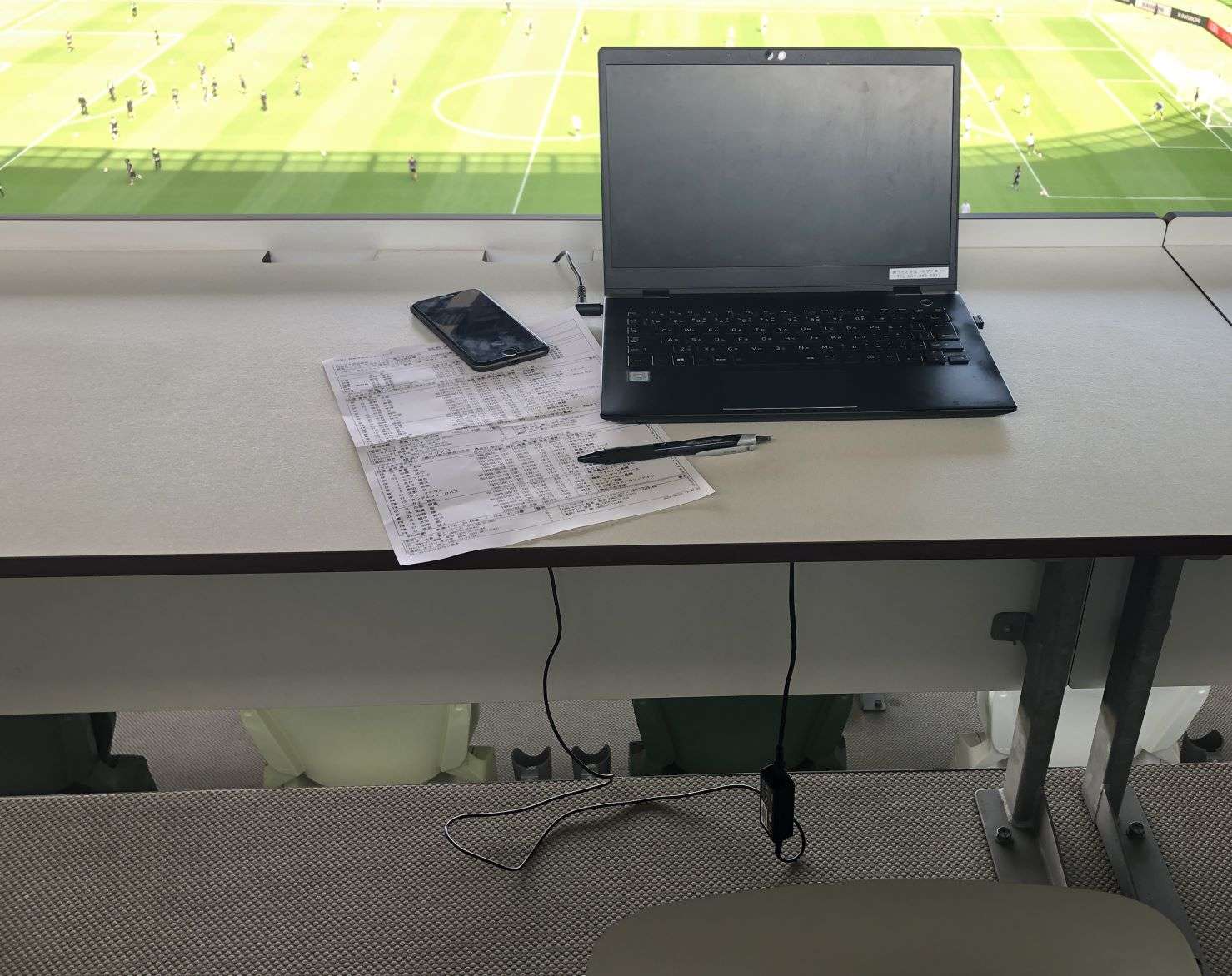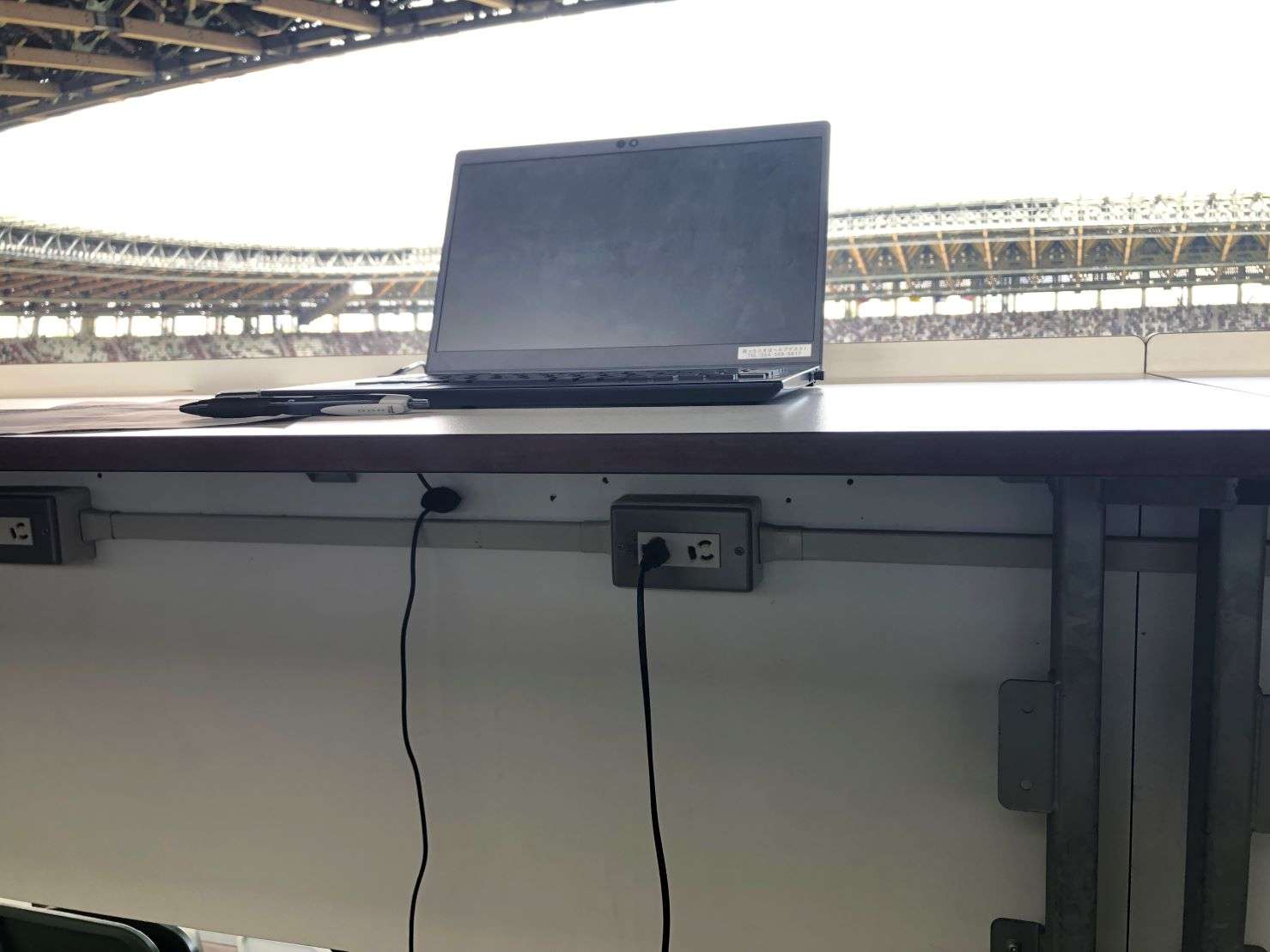 また、机には電源タップが常設されています。スマホの充電やPC作業も可能な、記者体験ができる特別なシート!
