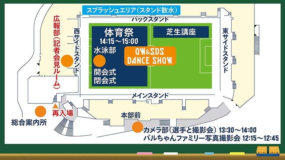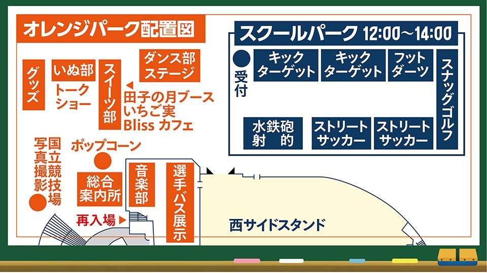・西サイドスタンド入場時に抽選券を配布いたします。体育祭のチームが東軍(オレンジ)、西軍(ディープシーブルー)となりますので、どちらが勝つか予想し、そのチームの抽選券を受け取ってください。※1人に付き1枚