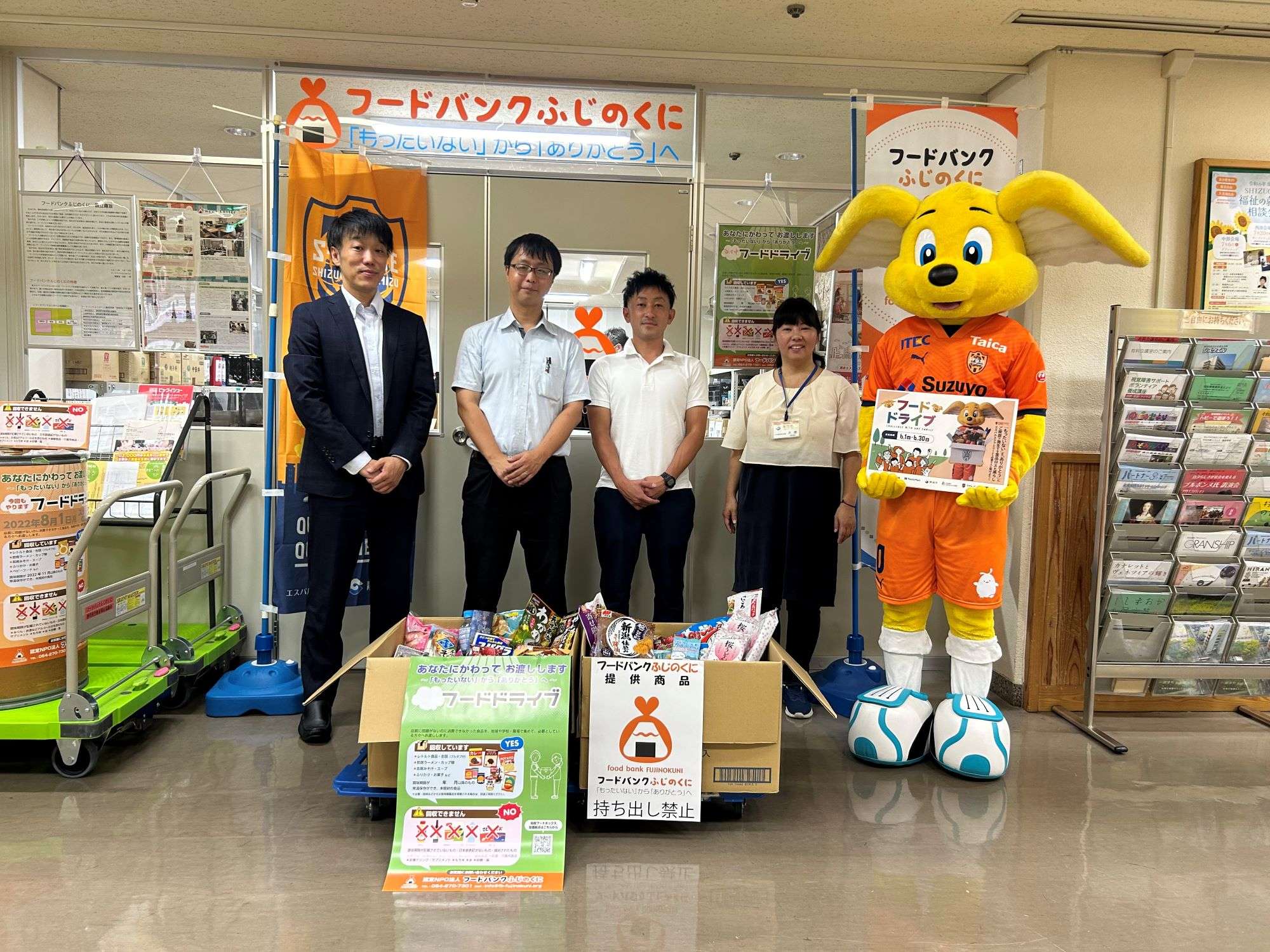 今回皆さまからご寄附いただいた食品648個 約96.3kgを、7/11(木)に関係企業・行政の皆さまとエスパルスのパルちゃんがフードバンクふじのくに様へ贈呈しました。