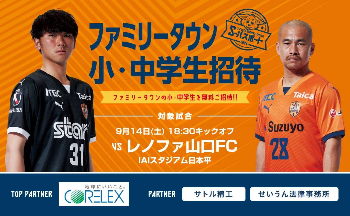 エスパルスは、ファミリータウン(三島市・御殿場市・長泉町・清水町・富士宮市・富士市・焼津市・島田市)の小中学校に通う児童・生徒を対象に、ホームゲームへの招待企画を実施しますので、下記の通りお知らせします。