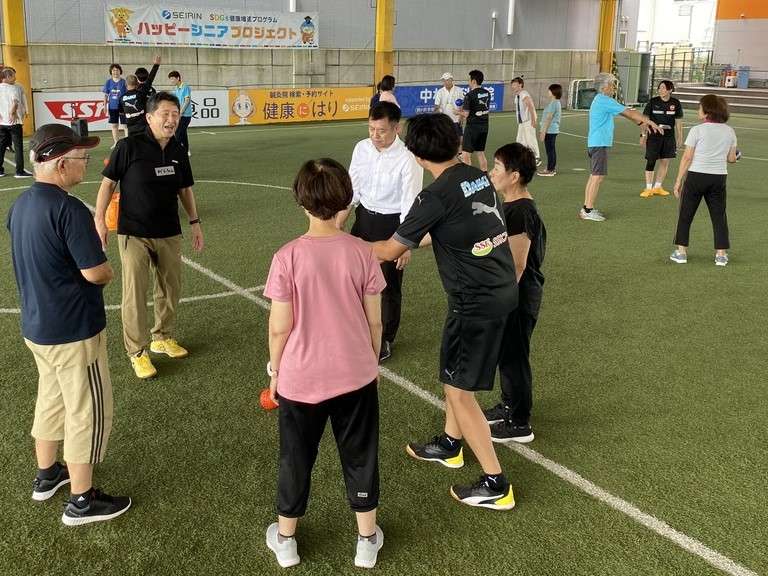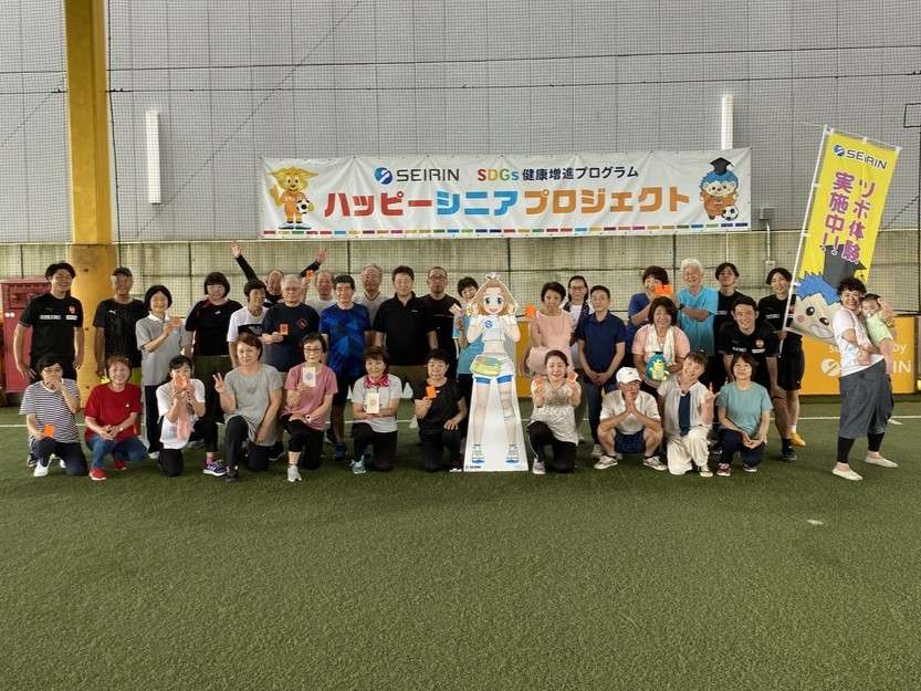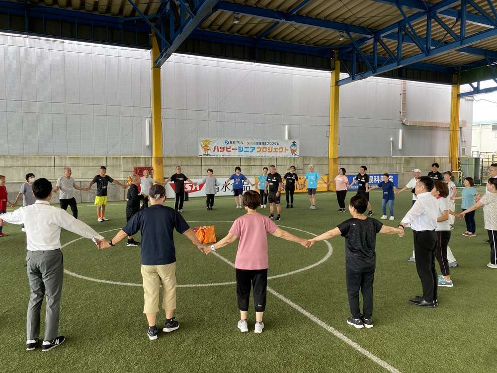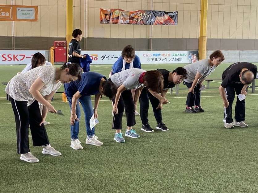 エスパルスドリームフィールド清水(静岡市清水区袖師町)にて、SDGs健康増進プログラム セイリン PRESENTS 「ハッピーシニアプロジェクト」 ~運動とはりで健康に~ 2024年度の4回目を7/19に開催し28名の皆様にご参加いただきました。