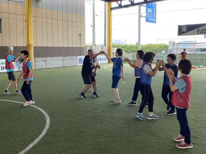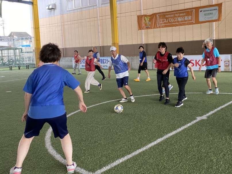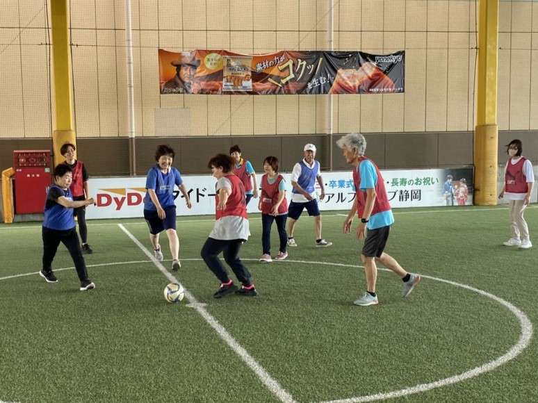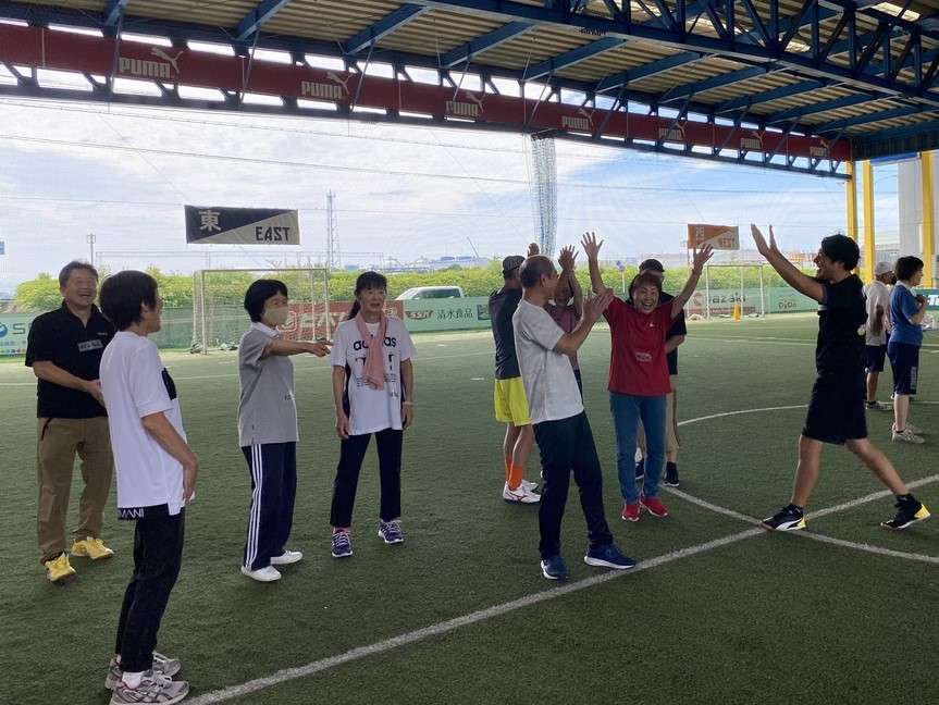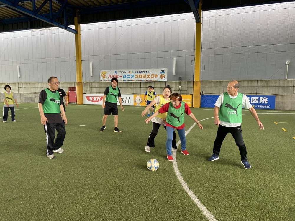 走るのも、ぶつかるのも禁止のウォーキングフットボールは、体力に自信がない方でも怪我無く安心です。今回初めてチャレンジした皆さんも、普段サッカーをプレーすることが全くない皆さんでも、楽しく安全にプレーすることができました。ゴールが決まった瞬間には、チームメイトと喜びを共有しあい、身体や脳の活性化だけでなく、コミュニティの場としても非常に楽しい時間を過ごしていただけます。